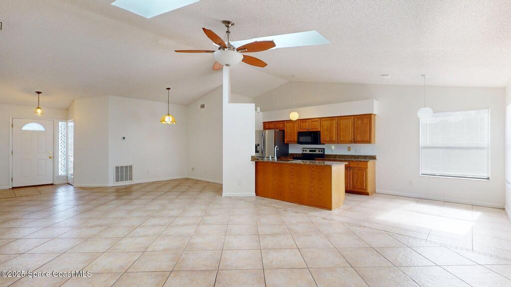 Breakfast Bar , Ceiling Fan(s) , Eat-in Kitchen , Open Floorplan , Primary Bathroom - Tub with Shower , Skylight(s) , Vaulted Ceiling(s) , Walk-In Closet(s)