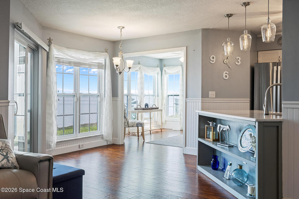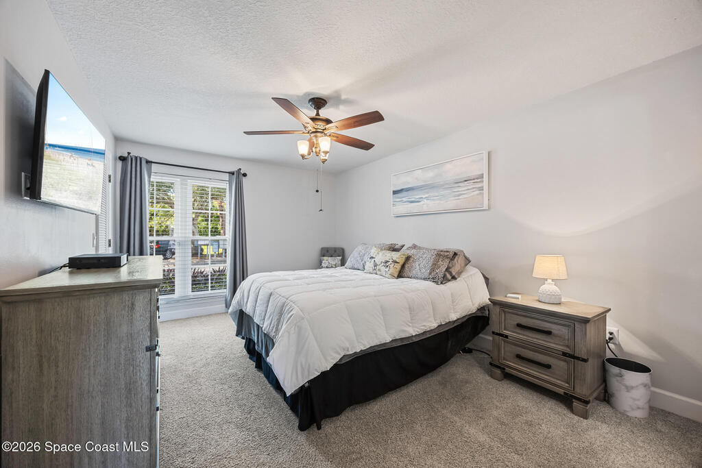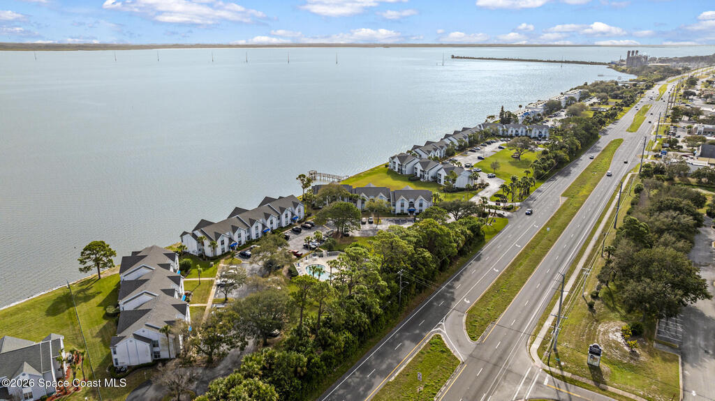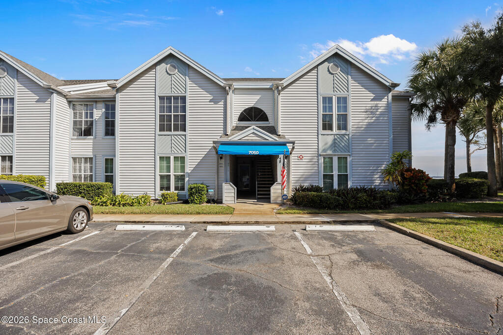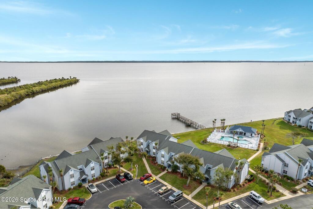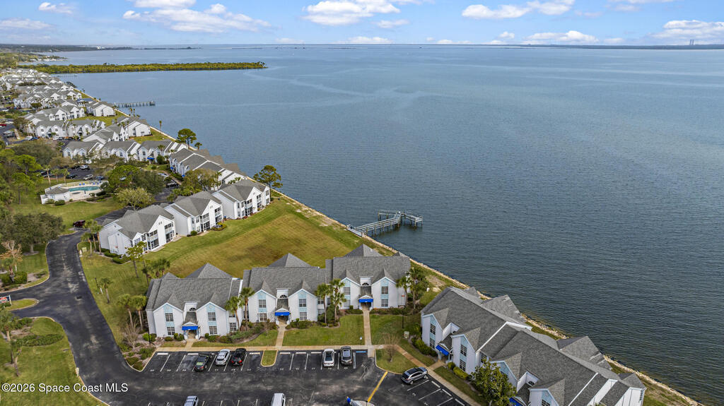 Nestled along the tranquil shores of the Indian River Lagoon, this beautifully updated first-floor end-unit condo offers captivating water views and a true coastal lifestyle. Wake up to shimmering sunrises, sip your coffee and watch dolphins and manatees glide by, and enjoy front-row views of iconic rocket launches--all from the comfort of your screened in waterfront patio.This spacious residence features 2 bedrooms plus a versatile flex room, ideal for a guest suite, home office, or fitness space, along with 2 full bathrooms and 1,186 square feet of thoughtfully designed living space. Ground-floor living with no stairs provides ease and convenience.The coastal-inspired kitchen showcases quartz countertops, white shaker cabinetry with gray accents, stainless steel appliances, a stylish backsplash, and a soft-touch faucet--perfect for both everyday living and entertaining. Bamboo laminate flooring flows through the main living areas, while plush new carpeting enhances the bedrooms