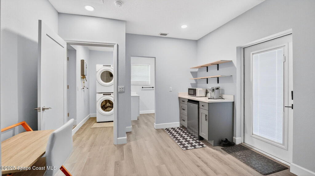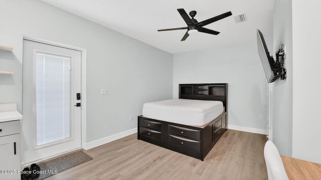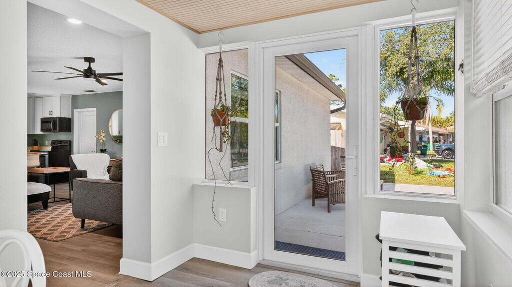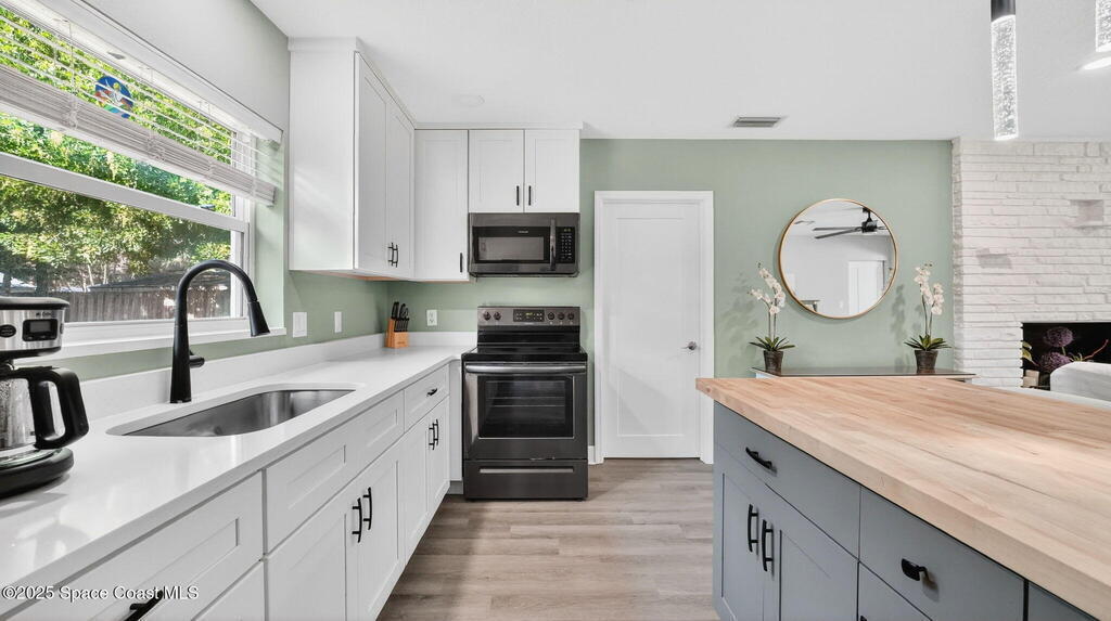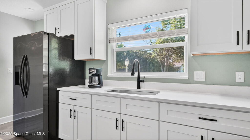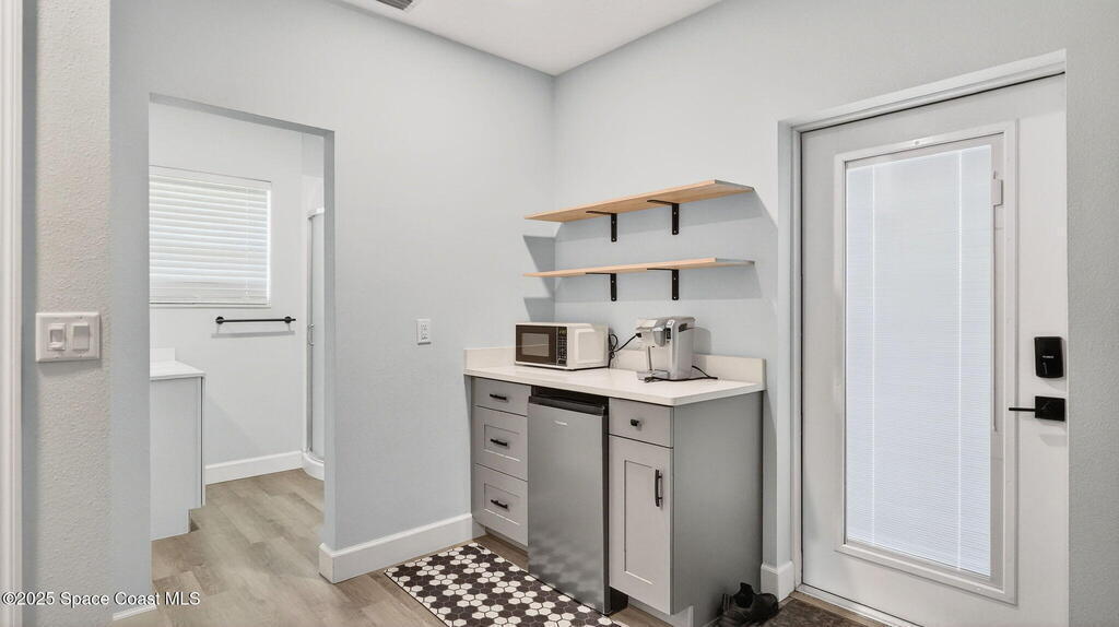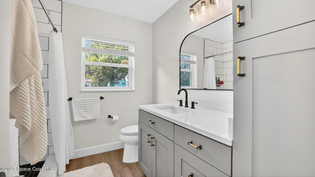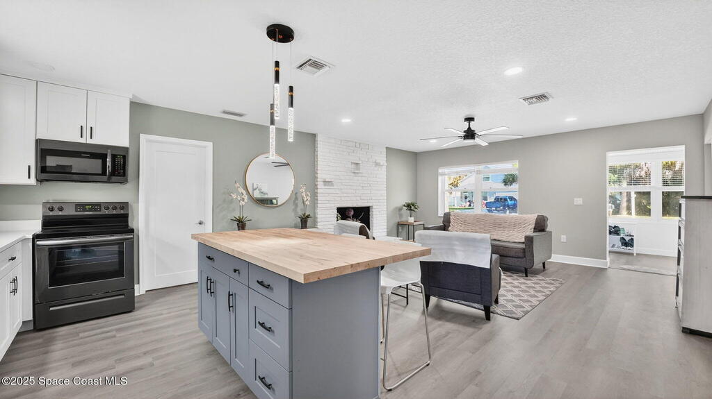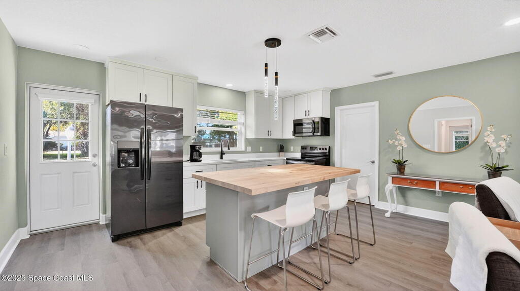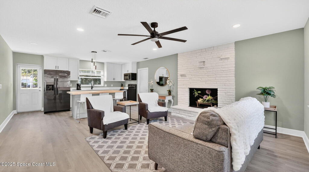 Welcome to this beautifully remodeled 3 bedroom, 2 bath home, fully gutted in 2023 with luxury vinyl flooring throughout and a spacious under air sunroom offering flexible living space.The kitchen showcases two tone cabinetry, quartz countertops, and a butcher block island, complemented by a fully tiled main bathroom and light filled bedrooms. A private side suite with its own bedroom, bathroom, and mini kitchen nook creates an excellent additional income opportunity or ideal setup for guests or multigenerational living.Enjoy peace of mind with impact windows, a 2023 roof, 2023 AC, 2023 tankless water heater, brand new electrical service and panel, new insulation, redone plumbing and sewer piping, and a new irrigation pump. A large backyard with endless potential completes this move in ready home!