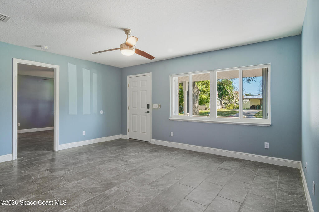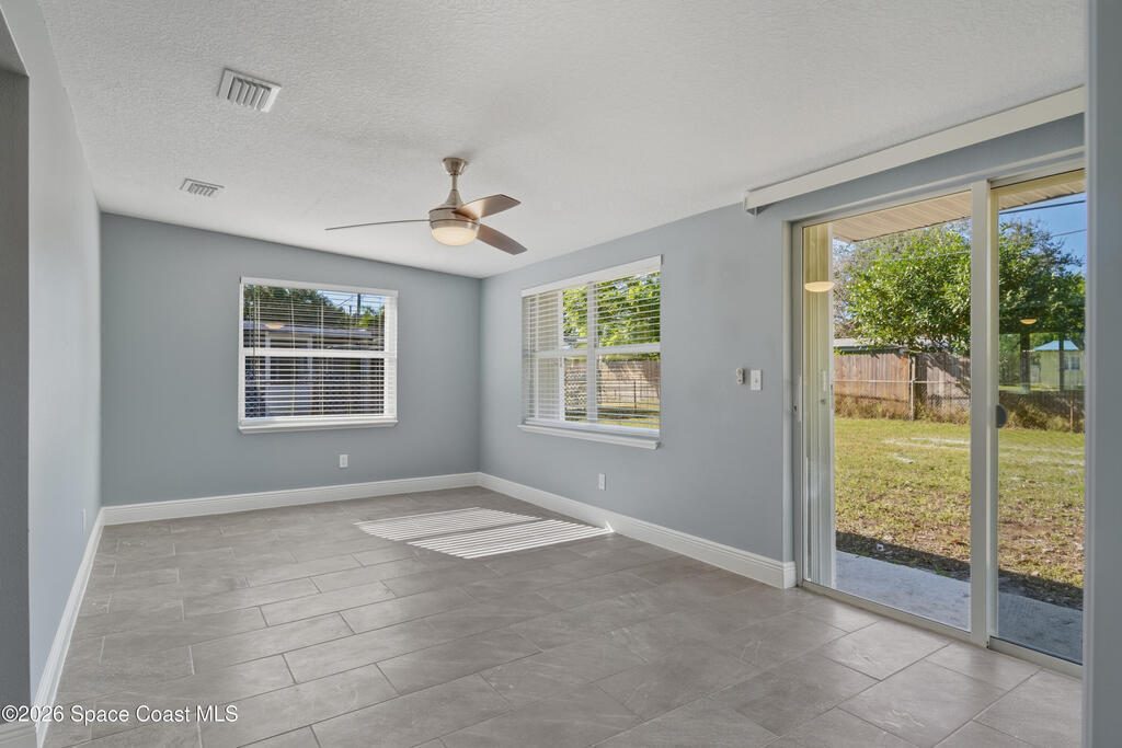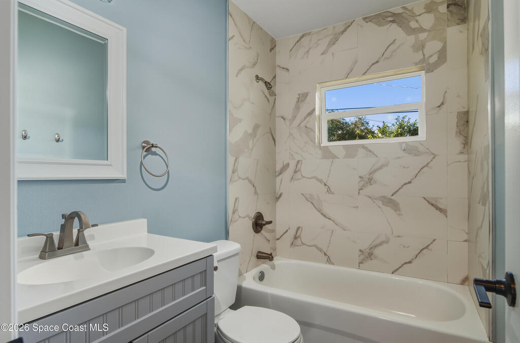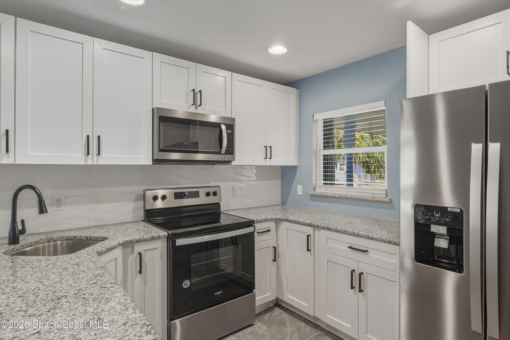 Move in ready remodeled home in the heart of Melbourne. Big fenced yard with mature trees and a one car garage. Brand new roof (2025). Newly updated kitchen with Stainless Steel appliances and granite counters. New tile flows throughout. New bathrooms, new paint inside and out. HVAC only 5 years old (2020). Bonus Florida room and large laundry room under air, includes dryer and brand new washing machine. Too many upgrades and bonus features to mention including masters walk in closet, ceiling fans and windows have easy close accordion storm shutters. Electric panel has been updated and all the cast iron plumbing has been replaced with PVC. Attached under docs tab are a new 4point and Wind Mit report.