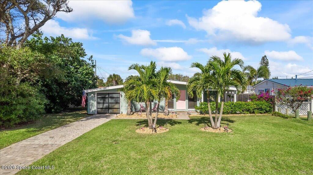 ACCEPTING SHOWINGS AND BACK UP OFFERS! Welcome home to this adorable, remodeled saltwater cottage! Only 1400 feet from the beautiful Atlantic Ocean, and located in a very active community, this beachside charmer is calling your name! The open concept features an updated eat in kitchen, granite countertops, stainless steel appliances, living room and dining room combo, and tile floors throughout the main living areas. Updates also include, fresh exterior paint, new roof 2024, new ducts 2025, new garage door, nice pavered driveway, walkway and porch.The expansive backyard is perfect for adding a pool or expanding the home. This is a must see! Move in ready and located near Patrick Space Force Base, Pineda Cswy, Pineda Beach Park, and Seagull Park, shopping and plenty of eateries! One block from the beach in a golf cart and bike friendly community.