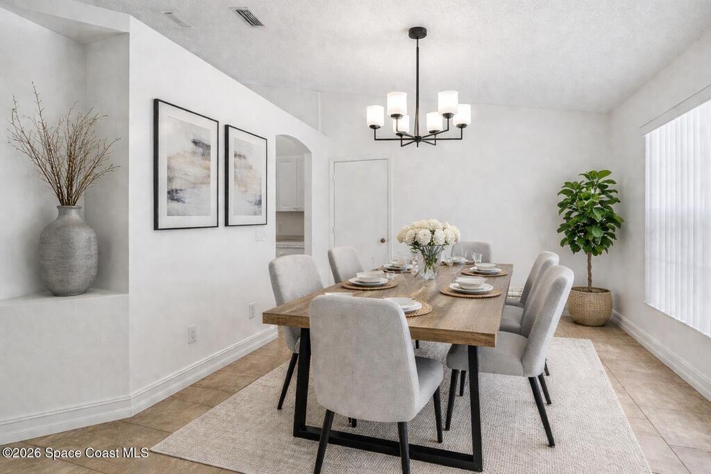$5,000 in buyer closing cost assistance offered. Comfort, functionality, and access to one of the most unique regions in the state. The open floor plan and vaulted ceilings create a bright, spacious feel throughout the main living areas. The large kitchen features a breakfast bar and flows seamlessly into the dining and family rooms, making it ideal for both everyday living and entertaining.The split-bedroom layout provides added privacy, with a generously sized primary suite featuring a walk-in closet and a bathroom with a tub and separate shower. Additional bedrooms are versatile and well-proportioned. Enjoy indoor-outdoor living with a screened porch overlooking a fenced backyard, perfect for relaxing or hosting guests.Close to KSC, beaches, wildlife preserves, the Indian River Lagoon, boating, fishing and more. Watch rockets from your yard!2018 roof, 2017 HVAC. Some photos are AI Generated to show potential and are labeled AI