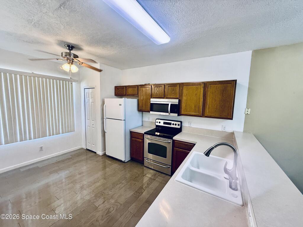 Attractive 2-story 2BD/2BA Condo in desirable area, in the Swiss Pointe Community. Large living and dining combo floorplan, ceiling fans throughout, and central cooling/heating. Window treatments - blinds, laminate flooring in living/dining and kitchen areas, carpet in bedrooms and tile in bathrooms. Master has own vanity and tub/shower. Gorgeous lake views from primary bedroom and back of house. Separate laundry area with washer/dryer hook-ups only. Close to all the shopping, restaurants and easy access to back porch. Sliders lead to the back trussed porch with ceiling fan. Two assigned parking spaces in front of unit. Absolutely No Pets No Exceptions. All Real Property Management Brevard residents are enrolled in the Resident Benefits Package (RBP) for $22.95/month which includes liability insurance, move-in concierge service making utility connection and home service setup a breeze during your move-in, and much more! More details upon application.