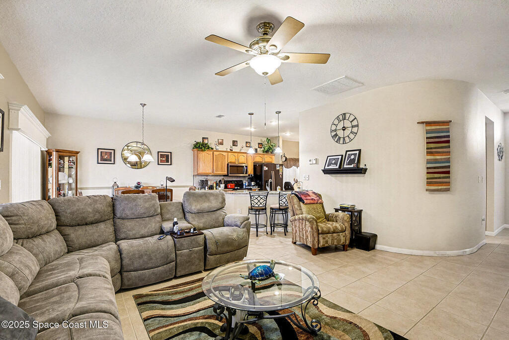 Resort-Style Living in Heritage Isle | Melbourne, FL Welcome to 6973 Premonition Drive, located in the highly sought-after Heritage Isle--one of Melbourne's premier 55+ communities where lifestyle truly comes first. This thoughtfully designed home offers 2 bedrooms, 2 bathrooms, plus a versatile flex room that can easily serve as a third bedroom, den, or home office, giving you flexibility without wasted space. Tile flooring flows through the main living areas, while carpeted bedrooms add comfort and warmth where you want it most. The kitchen is both stylish and functional, featuring newer granite countertops, a stainless steel sink, black stainless steel appliances, and a convenient eat-in area--perfect for casual meals, morning coffee, or hosting friends. The kitchen opens seamlessly to the living and dining areas, making everyday living and entertaining effortless.