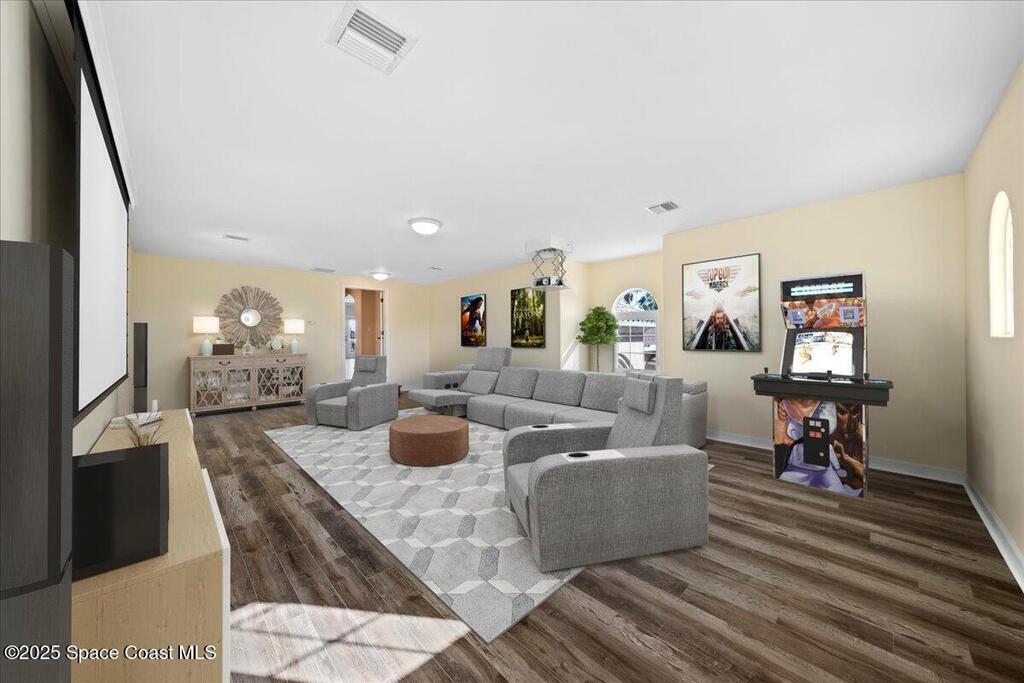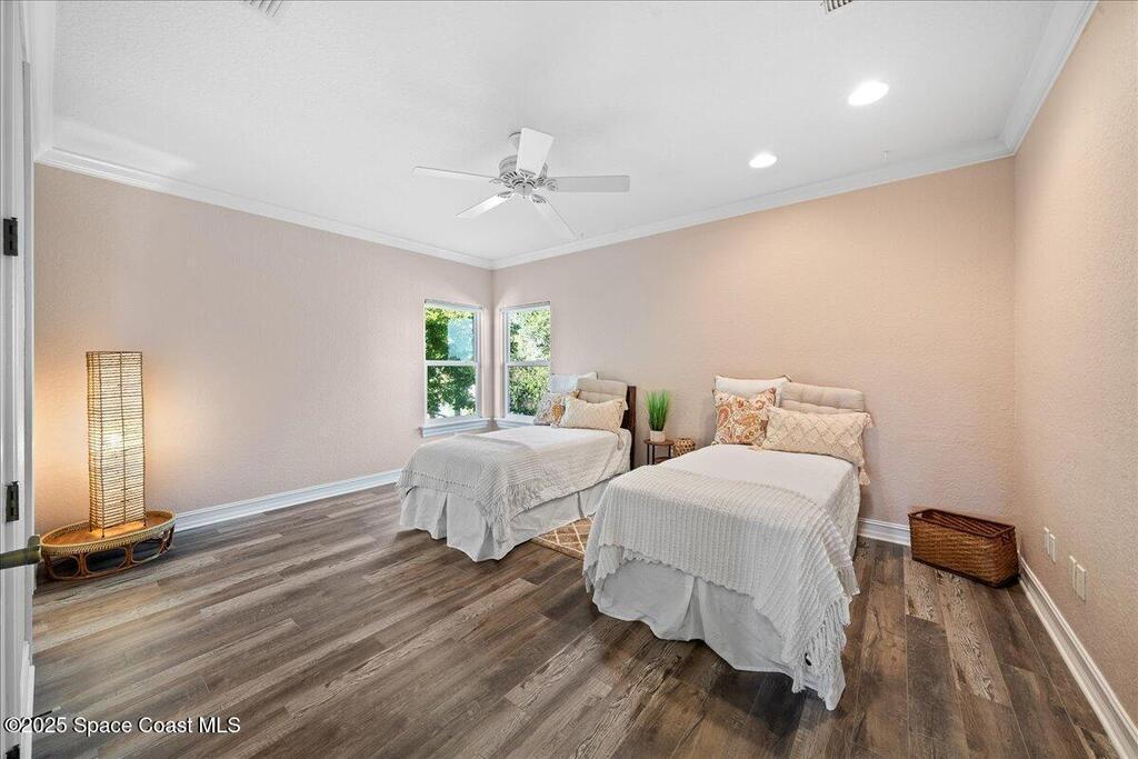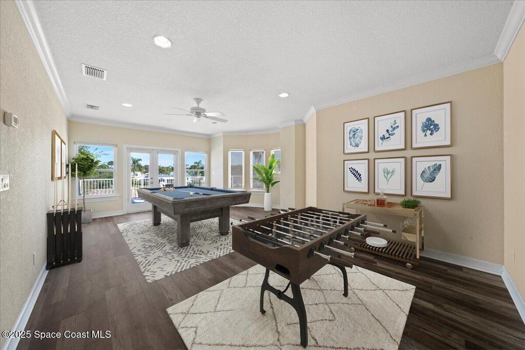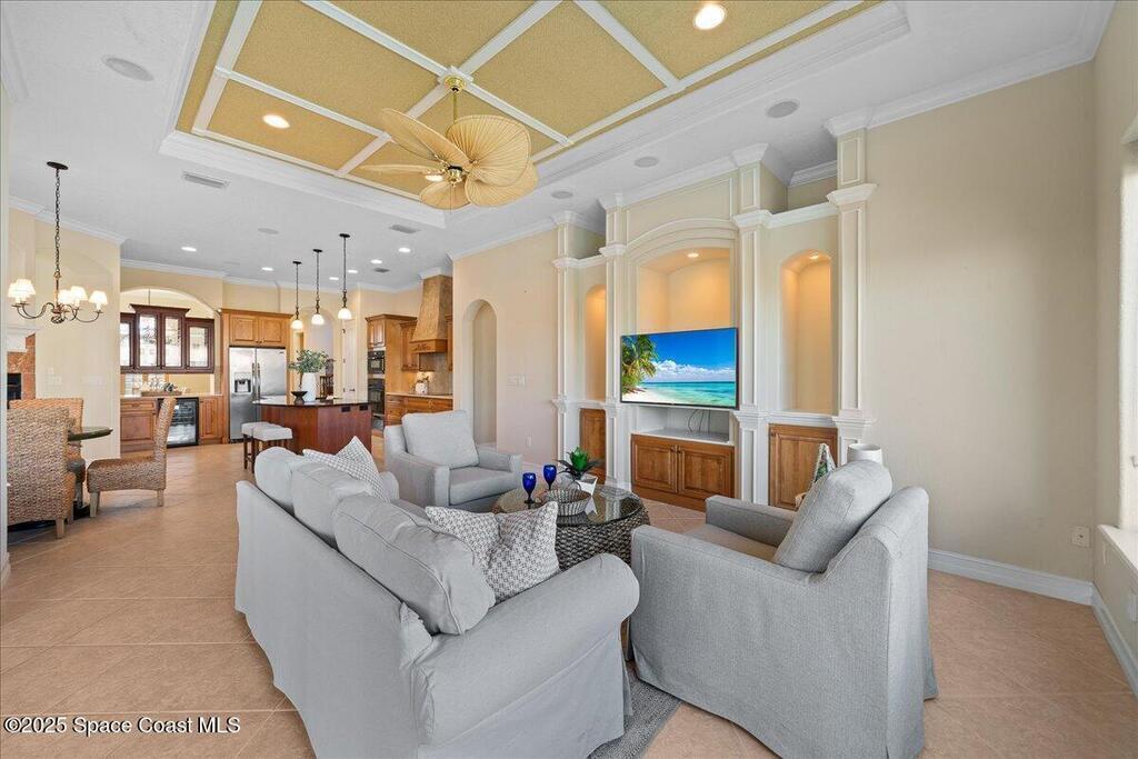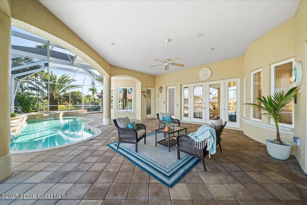 Experience the pinnacle of coastal luxury in the exclusive gated community of Tortoise Island. This exceptional Arthur Rutenberg-designed, concrete block Mediterranean estate offers 4,301 sq ft of refined living space (6,872 total sq ft). Featuring 4 bedrooms and 4 bathrooms, the home is defined by timeless elegance and architectural depth, highlighted by sophisticated coffered ceilings.Enjoy breathtaking deep-water Grand Canal views from nearly every room. The private backyard oasis features a screened-in pool and spa, plus a private dock for direct canal access--perfect for boating enthusiasts. Inside, the open-concept layout is anchored by a stunning see-through gas fireplace connecting the formal living area and kitchen. Two versatile bonus rooms provide flexible space for a home gym, cinema, or executive office. Complete with a 3-car garage and a design that effortlessly blends indoor and outdoor living, this residence delivers a premier Satellite Beach lifestyle .