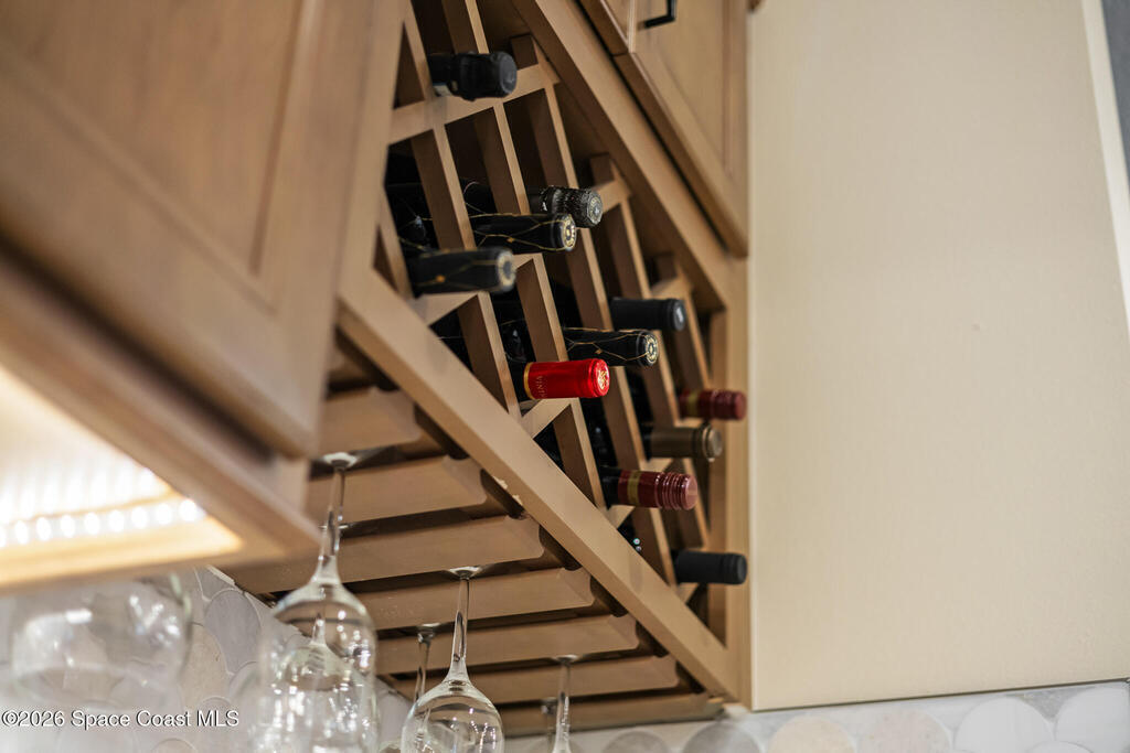 Breakfast Bar , Breakfast Nook , Built-in Features , Ceiling Fan(s) , Central Vacuum , Eat-in Kitchen , Entrance Foyer , Guest Suite , His and Hers Closets , Kitchen Island , Open Floorplan , Pantry , Primary Bathroom - Shower No Tub , Primary Downstairs , Split Bedrooms , Vaulted Ceiling(s) , Walk-In Closet(s) , Wine Cellar