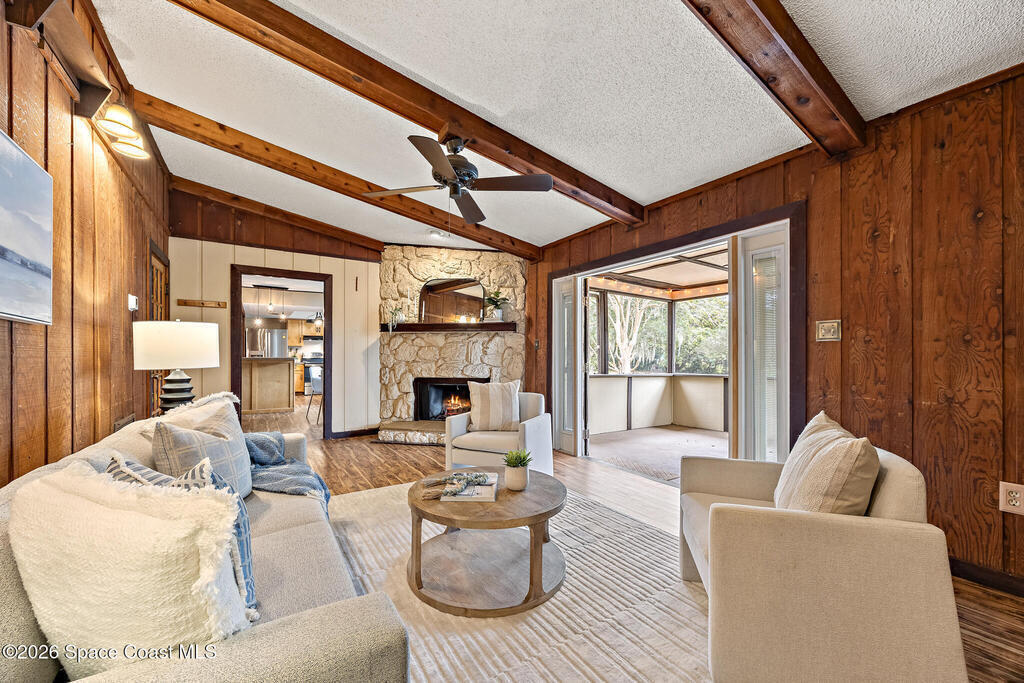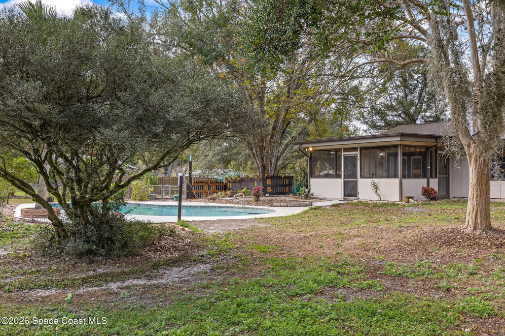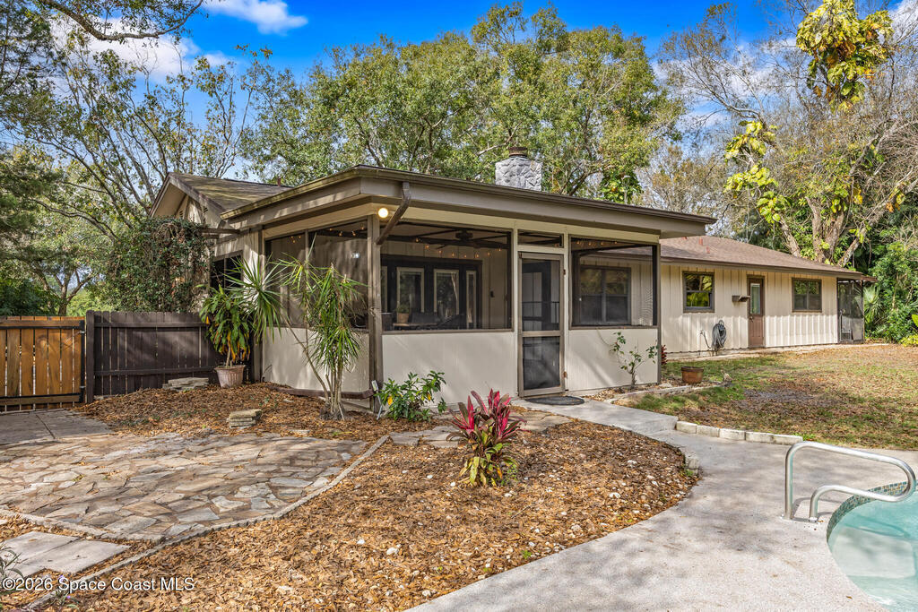 Rare June Park opportunity on a full acre lot offering exceptional privacy, mature canopy, and classic Florida character. Set on a quiet dead end street, no HOA, no neighbor directly across the road, and natural buffers behind the property, this home delivers a level of seclusion that's increasingly hard to find. 3 bed, 2 baths, including an expanded primary suite with private outdoor patio. Vaulted ceilings and a fireplace anchor the den, which opens through to a screened patio overlooking the pool and yard. Updates include: 2023 roof, 2020 HVAC, updated electric panels, recently resurfaced pool & patio, a new water softener and filtration system installed Dec 2025. A portion of the original garage converted to a guest room, and the remaining space is a utility & laundry area. Grounds feature extensive landscaping, mature trees, citrus plantings, and a 16' x 32' powered workshop on a concrete slab & additional shed. This is not cookie cutter living. It's land, privacy, and lifestyle.