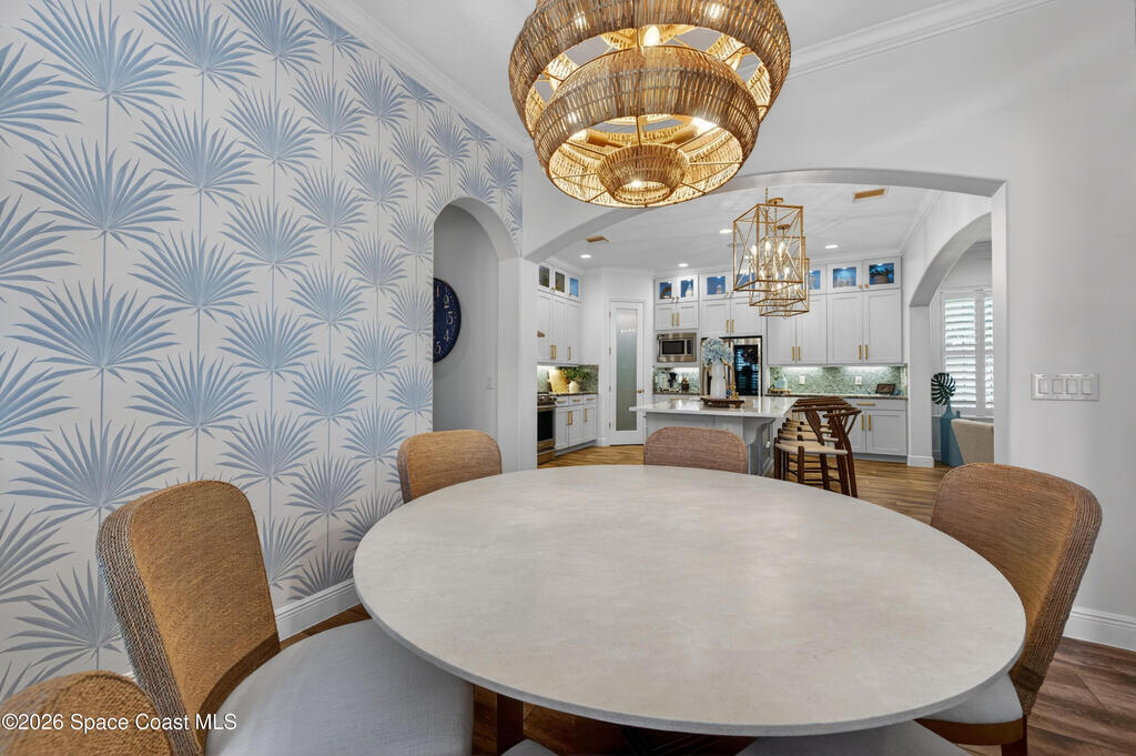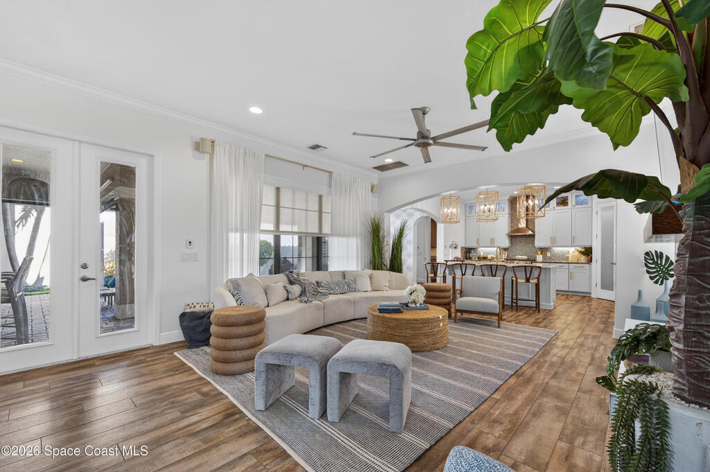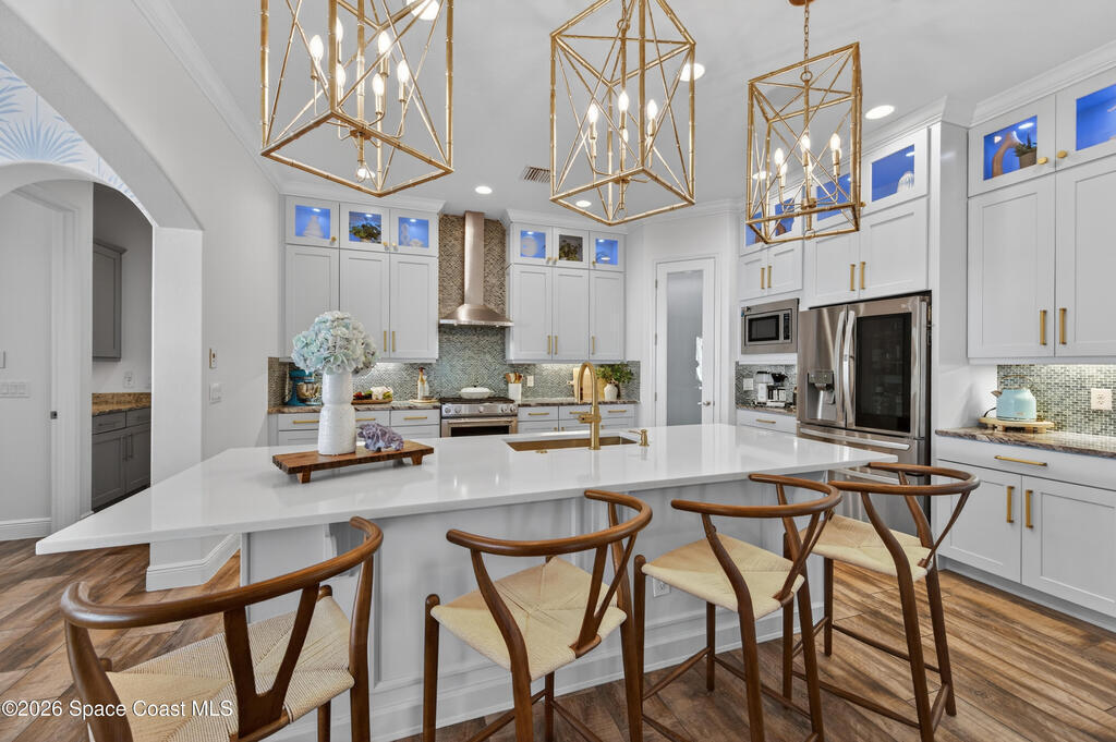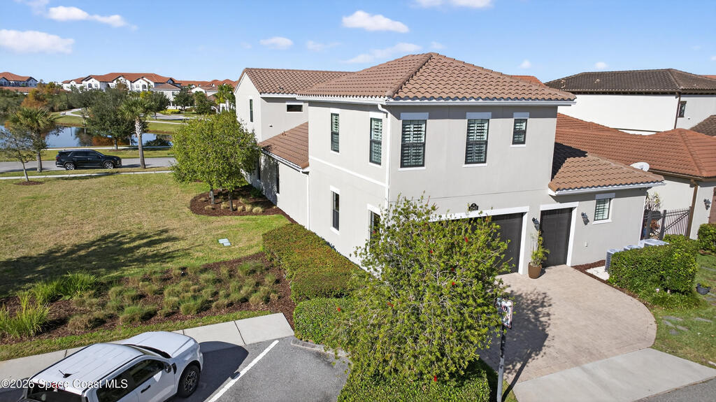 Exceptional luxury meets effortless Florida living in this beautifully appointed 4-bedroom, 4.5-bath residence with a bonus room, ideally located in the heart of Viera. Thoughtfully designed and professionally decorated in a timeless Serena & Lily-inspired style, this home offers high-end finishes, modern conveniences, and lake views, and is move-in ready with the option to be sold partially furnished.The gourmet kitchen features ceiling-height cabinetry and premium finishes, flowing seamlessly into spacious living areas enhanced by a whole-home speaker system and a striking fireplace. Hurricane-rated windows, plantation shutters throughout, and recent interior paint provide peace of mind and a fresh, turnkey feel.Indoor-outdoor living shines in the private courtyard, complete with remote screens, a fully equipped summer kitchen, and a built-in fire pit perfect for entertaining or relaxing year-round. In addition to the 2 car garage, there is a golf cart garage as well.