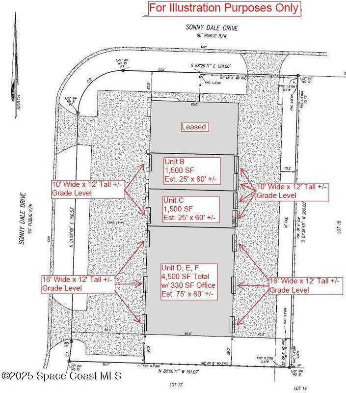 Excellent opportunity to lease a 1,500 SF warehouse in the heart of West Melbourne! Unit C dimensions are est. 25' wide x 60' deep. Concrete flooring and est. 15' 7'' - 17' 8'' clear height. There are three 10' wide x 12' tall +/- grade level doors. Rent includes City Water/Sewer and Dumpster. Tenant pays FPL electric, which is individually metered. Property is just off of Nasa Boulevard which is the direct connector between Interstate 95 and the Melbourne International Airport. Easy access to Wickham Road, Ellis Road and US1. Nearby employers include Northrop Grumman, L3Harris, Embraer and DRS to name a few. Lots of restaurants, daycares, and schools nearby. Make this the future home for your business today!