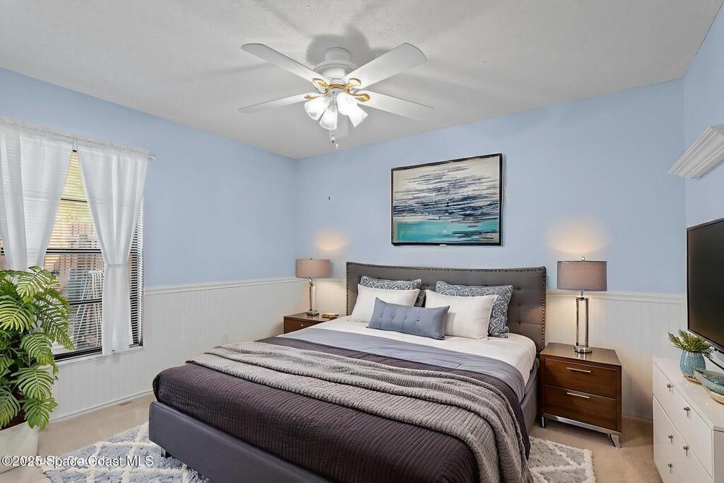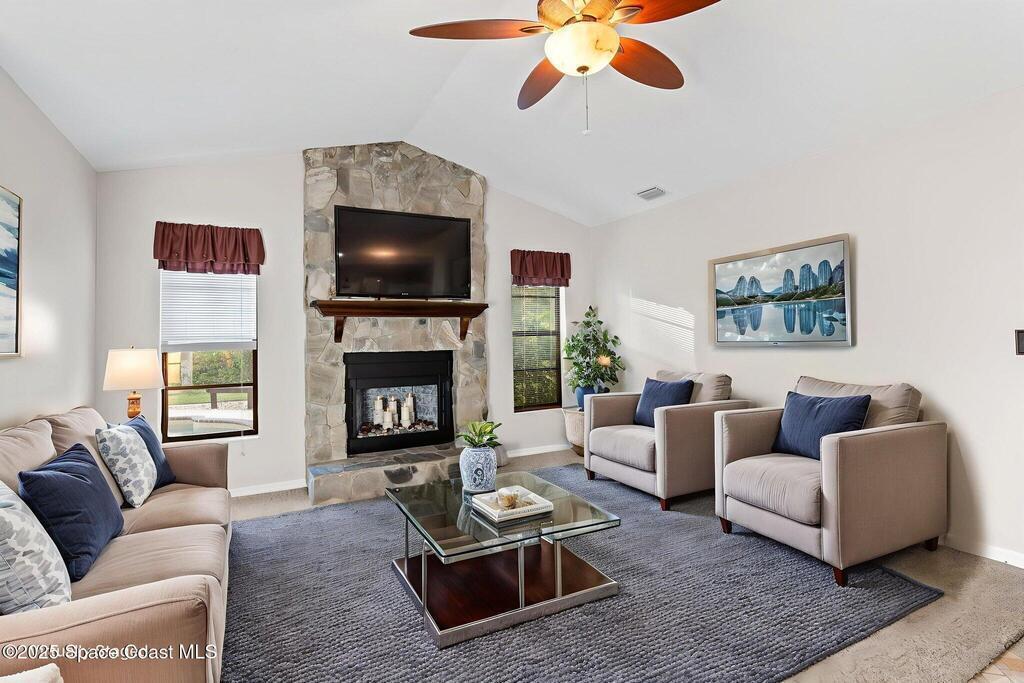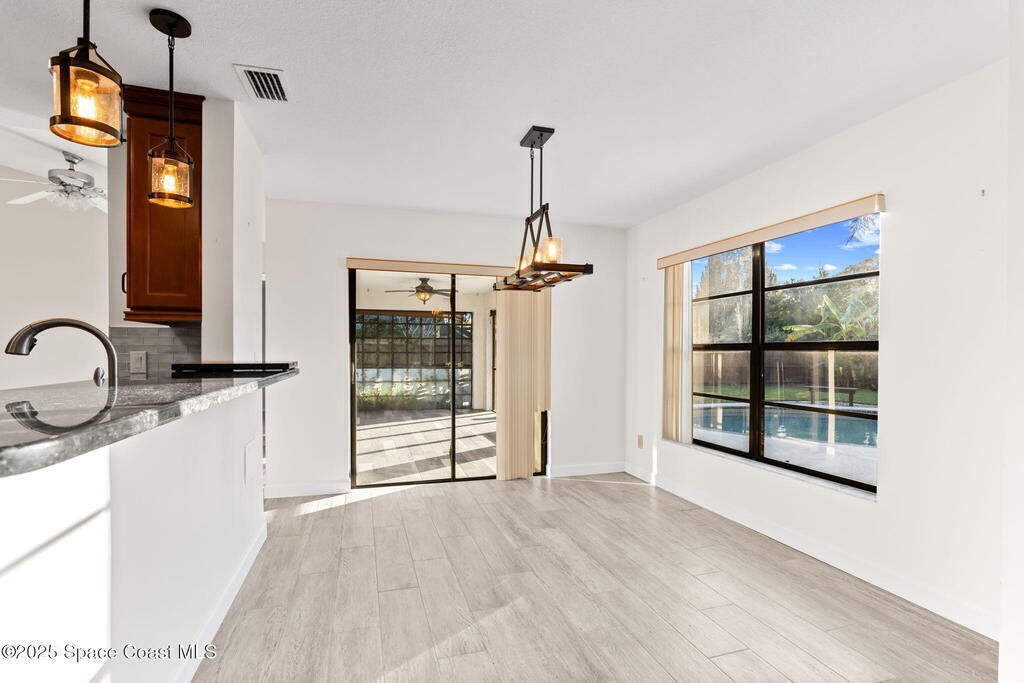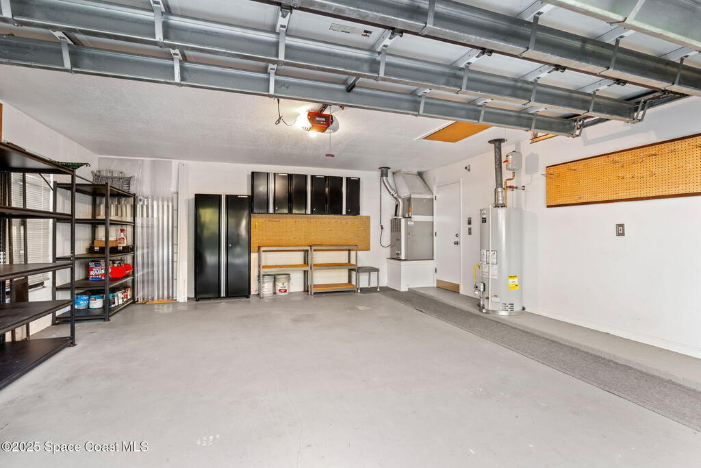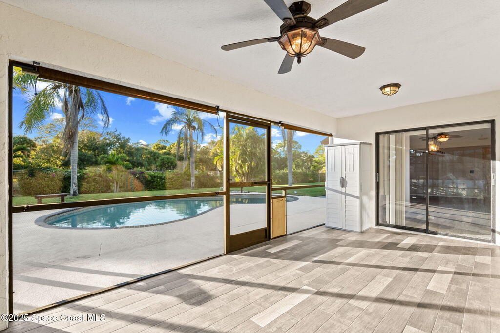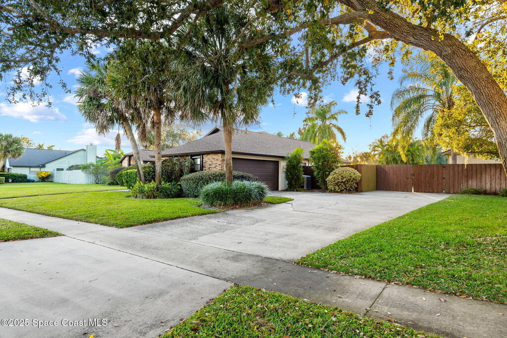 Set on a rare double lot, this pool home feels like a private tropical retreat. Evenings glow with sunset views over the canal, framed by palms, lush landscaping, and Florida wildlife. The backyard features mature tropical fruit trees and a lighted pergola for outdoor entertaining. A powered workshop adds creative flexibility, while double gate access provides room for recreational toys. A large screened in porch connects seamlessly to the outdoor living area. Inside, the primary features two walk in closets and ensuite bathroom. Notable updates include a premium kitchen remodel, 2022 roof, 2020 AC condenser, 2023 gas water heater, storm shutters, and a side load garage with heavy duty Husky(r) organization shelving. Ideally located near Publix, the Eau Gallie Arts District, and I-95.