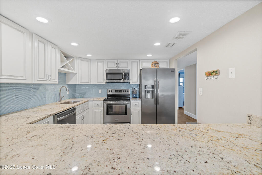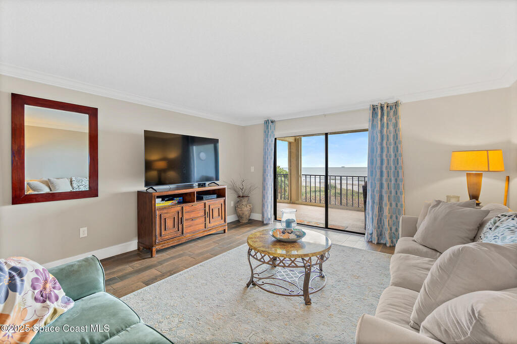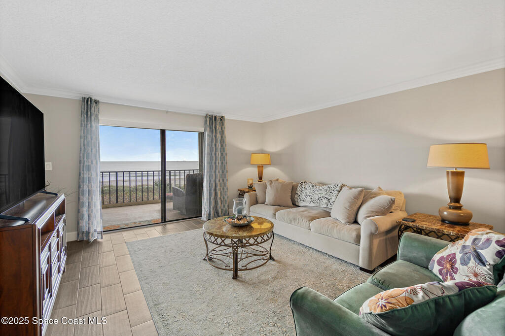 DIRECT OCEANFRONT LIVING awaits in this beautifully maintained 4th-floor 3 bedroom, 2 bathroom condo with breathtaking panoramic water views! Enjoy spectacular sunrises, Atlantic ocean breezes and rocket launches from your covered beachfront patio, complete with storm shutters and impact windows for peace of mind. This light and bright residence features an open floorplan, wood-look tile flooring throughout the main living areas & bedrooms, and sleek tile flooring in bathrooms. The modern kitchen offers granite countertops and newer stainless steel appliances. The oceanfront primary suite includes an ensuite bath and spacious closets, while two additional guest bedrooms share a full bath. A private 1-car garage and an in-unit laundry room adds convenience, and the condo can be sold furnishings negotiable for an effortless move-in experience. Ideally located near shops, restaurants, the Cocoa Beach Pier, and Port Canaveral, this is a rare opportunity to own a true oceanfront retreat!