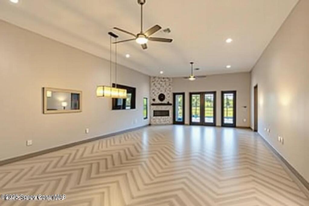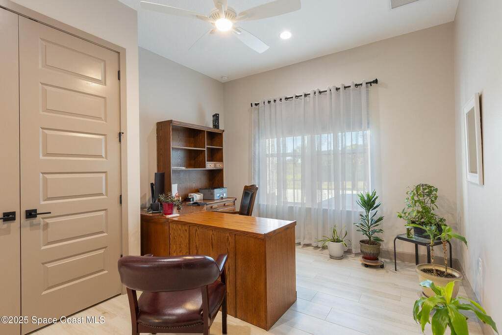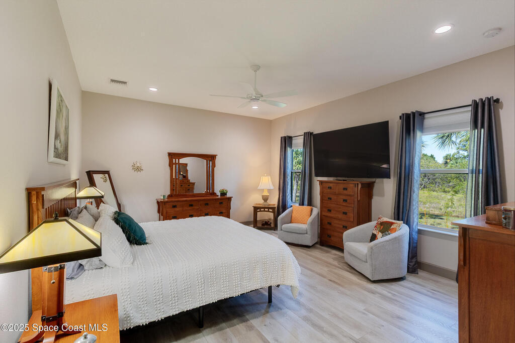 STUNNING PERFECTION best describes this GORGEOUS HOME in Deer Run, an Exclusive Equestrian Community. Experience the perfect blend of luxury, privacy, and convenience with this meticulously crafted, custom-built home. Set on 2.68 acres at the end of a tranquil cul-de-sac, this 3-Bed, 3-Bath + Office offers unparalleled privacy. Minutes from I-95 and the new Publix shopping center, this home delivers the best of both worlds-seclusion and accessibility. Spanning 3529 sf, the open concept design is modern luxury. Elegant quartz countertops and backsplashes complement the custom herringbone tile flooring, while the bedrooms and the bonus room feature rich white oak look LVP flooring. The home boasts LED lighting and modern neutral designs throughout. 12-foot ceilings make for an expansive Great Room and the electric fireplace adds ambiance and warmth. This energy-efficient home features a Metal Roof, impact windows and doors and owned 22KW solar system for $27 electric bills monthly!