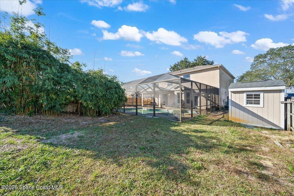 Welcome to this spacious 4BD/3BA pool home in the desirable Oaktrails at Meadowridge. Featuring a downstairs bedroom with full pool bath, plus an upstairs primary suite, 2 guest bedrooms, full bath, and a large loft perfect for office, playroom, or second living space. Fresh interior paint and NEW carpet upstairs (2025). Sparkling heated pool & spa with recently re-screened enclosure. Ideal for entertaining or watching rocket launches from home. Double laundry units stay! ROOF 2018. Lush yard with mature shade trees and a 2-car garage with overhead storage. Close to beaches, parks, bike trails, boat ramps, & I-95. Short drive to NASA & Orlando. This is Titusville living at its best!
