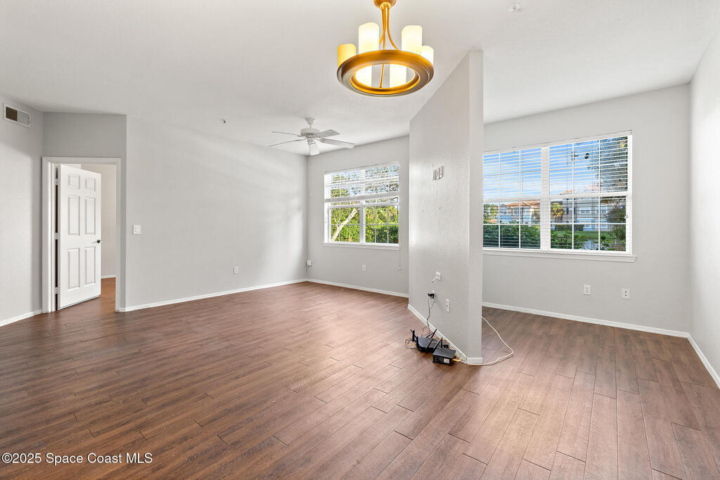 Location, location, location. Viera living! Lakefront Living with Low-Maintenance Ease! This beautifully updated 1st-floor end-unit condo in the gated Lakes at Viera East community offers breathtaking water views from nearly every window. Featuring 2 bedrooms, 2 bathrooms, and an open, spacious floor plan, this move-in-ready unit showcases luxury vinyl plank flooring throughout (no carpet), stylish new lighting, and a charming kitchen with granite countertops, pantry, and newer white appliances. Both bedrooms include walk-in closets for ample storage. Washer and dryer hookup in the unit. The HOA covers cable, internet, exterior insurance, and maintenance, while the community offers resort-style amenities including a pool, and gym. Pet-friendly (2 pets allowed--cat and/or dog) with a 6-month rental minimum. Prime location minutes from I-95, shopping, dining, and all that Viera has to offer--don't miss this lakefront gem!