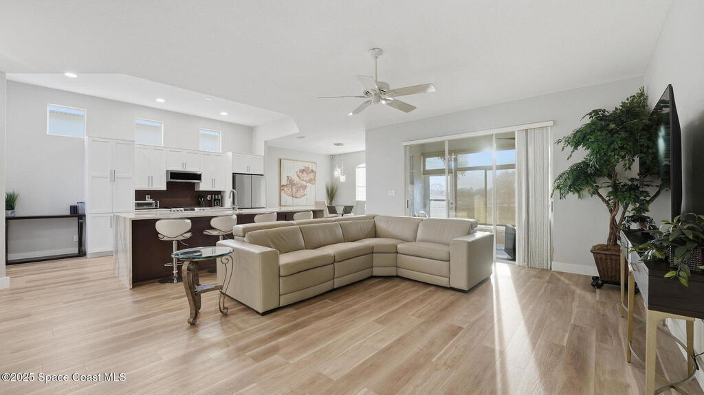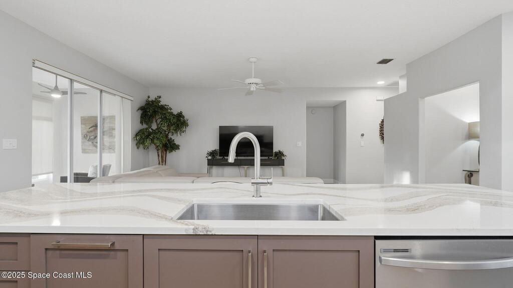 Experience exceptional golf-course living in this meticulously redesigned home positioned on the 18th tee, with sweeping views of the putting green and driving range just steps away. This complete remodel includes wall removal, bathrooms taken to the studs with all-new plumbing, and a spa-style primary bath featuring a barrier-free, wheelchair-friendly walk-in shower.The gourmet kitchen stands out with a 7-ft waterfall island equipped with electrical on one end, a gas range, and premium stainless steel appliances. Dual pantries provide impressive storage. Additional living spaces include a dining room and a versatile den perfect for an office or guest bedroom. The enclosed rear patio--fully finished and under air--adds valuable extra square footage. With new flooring, fresh paint, and high-quality updates throughout, this home blends modern luxury with an unbeatable golf lifestyle.