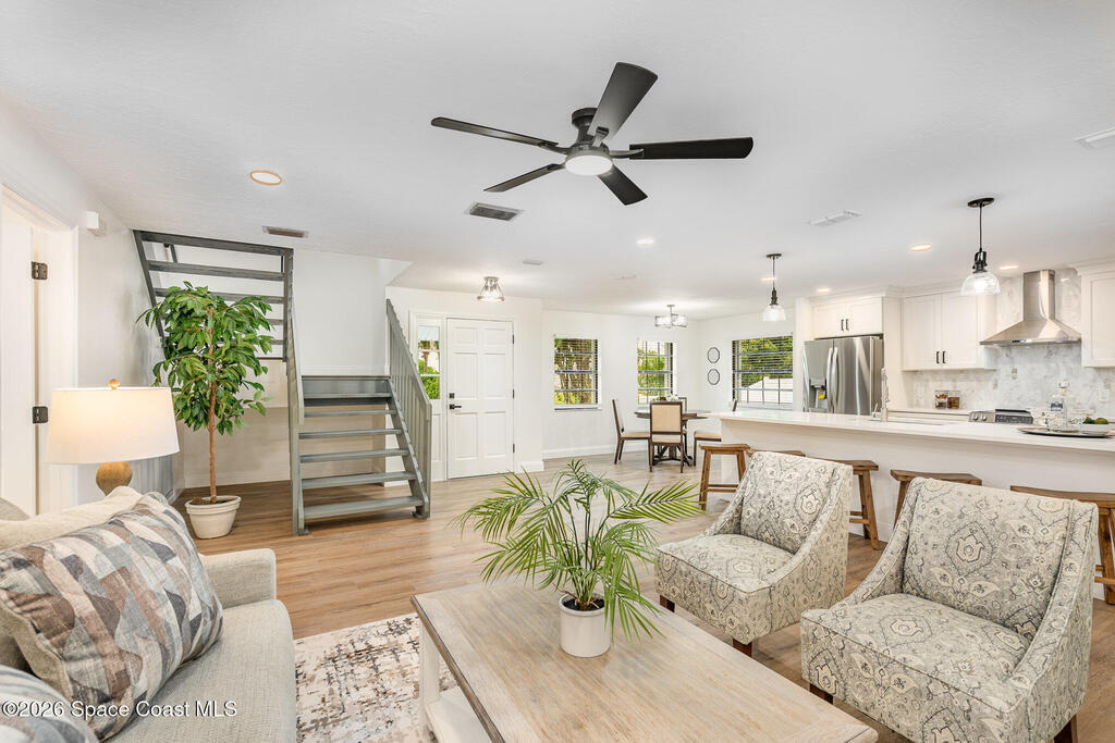 Beautiful waterfront home just a short stroll to private beach access. Situated on a quiet canal with direct access to the Indian River, ideal for kayaking, paddleboarding, or a small fishing boat. Located in the friendly Sunnyland Beach community, known for its neighborhood traditions including the holiday golf cart and boat parade, plus social gatherings at nearby Aquarina. Publix is just 10 minutes away, with Sebastian Inlet a short drive south along scenic A1A. Inside, the open-concept layout features an updated kitchen with large island, light-filled living and dining areas, and French doors leading to a screened patio overlooking the tranquil canal with no rear neighbors. The primary suite offers a renovated bath and walk-in closet, with two additional bedrooms for family or guests. Metal Roof 2004 (still has life!), HWH 2017, HVAC 2019. Crypto offers welcome.