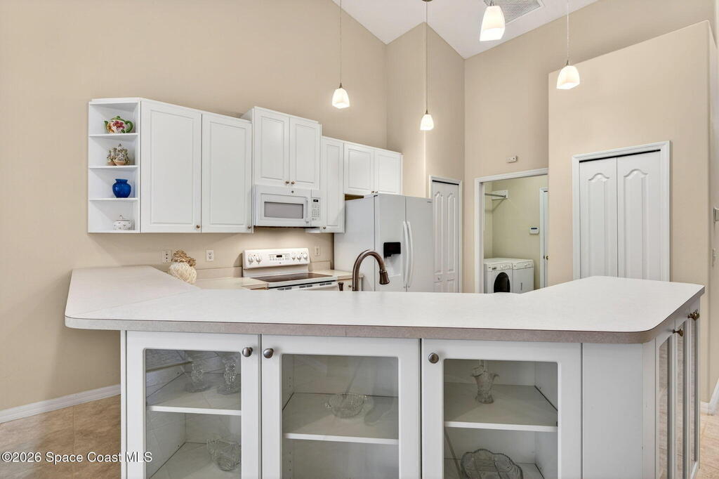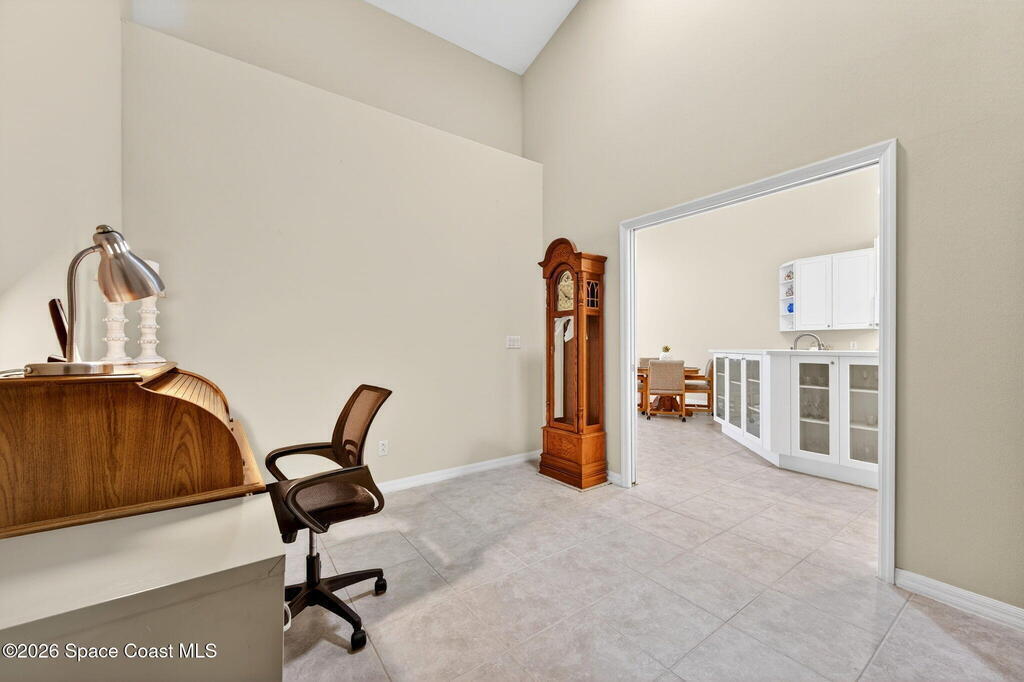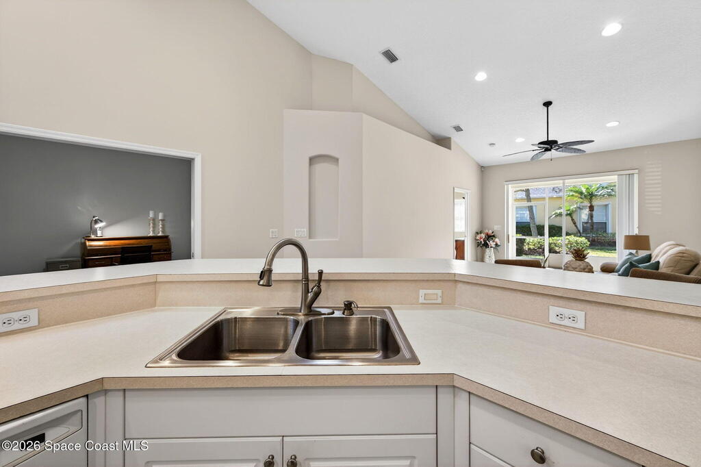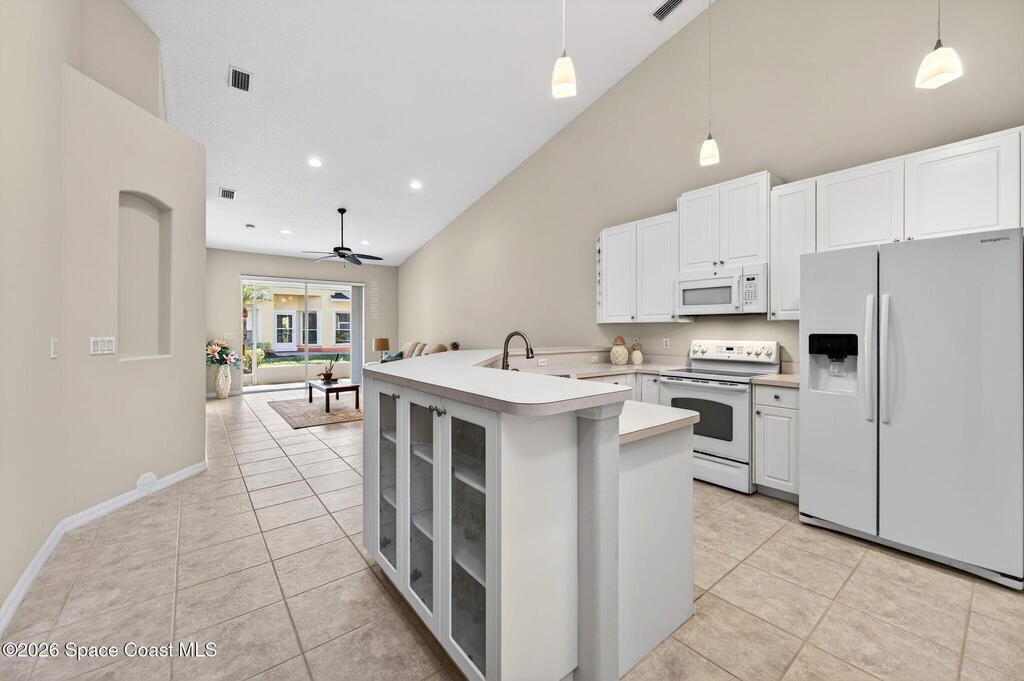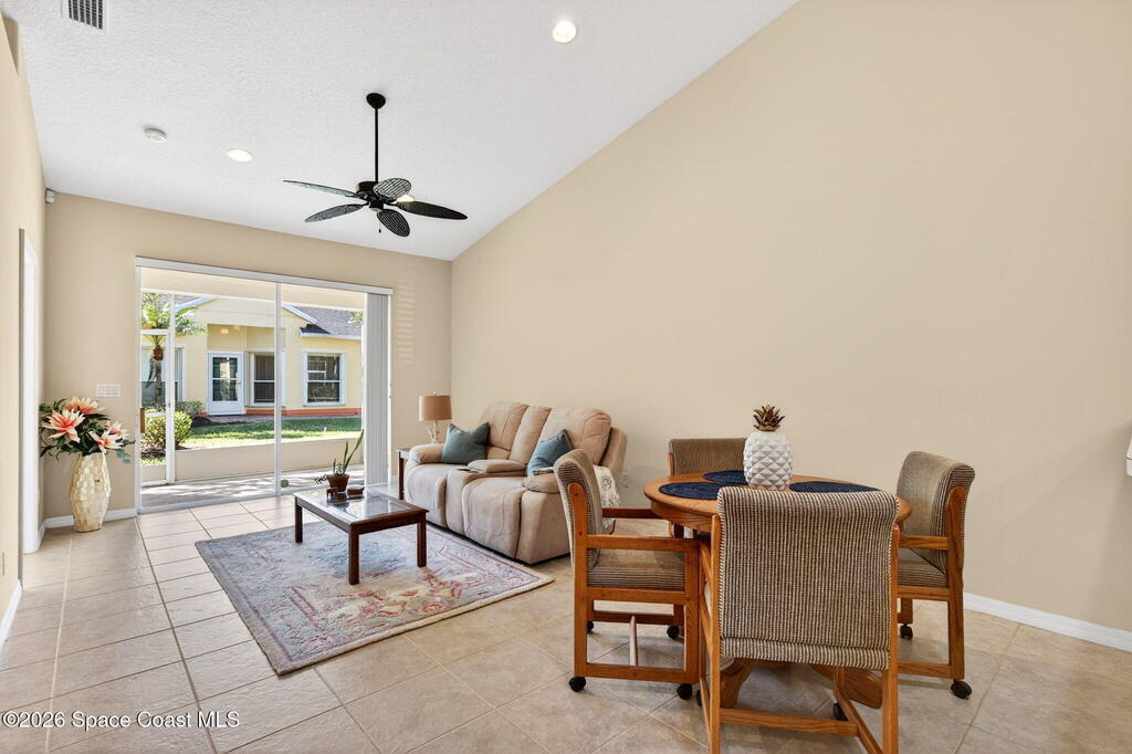 Clean, crisp, and impeccably maintained -- this better-than-new villa is a true standout in Heritage Isle! This one-story home offers 2 bedrooms, 2 bathrooms, a 1-car garage, and a versatile flex space that can easily serve as a third bedroom, home office, hobby room, or formal dining area. Inside, you'll love the brand-new carpet in the bedrooms, tile flooring throughout the main living areas, and an open-concept kitchen with a convenient adjacent laundry room. The home is filled with thoughtful upgrades including accordion storm shutters and a beautiful walk-in shower in the primary suite, along with double vanities and a spacious walk-in closet. Step outside to your screened lanai, the perfect spot to enjoy your morning coffee or unwind in the evening. Located just one block from the 21,000-sq-ft resort-style clubhouse, this home is nestled in Viera's premier gated 55+ community of Heritage Isle, where exterior maintenance is included so you can fully embrace a carefree lifestyle.