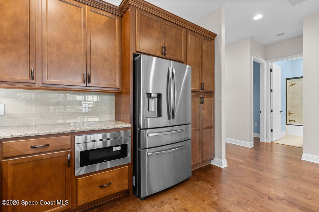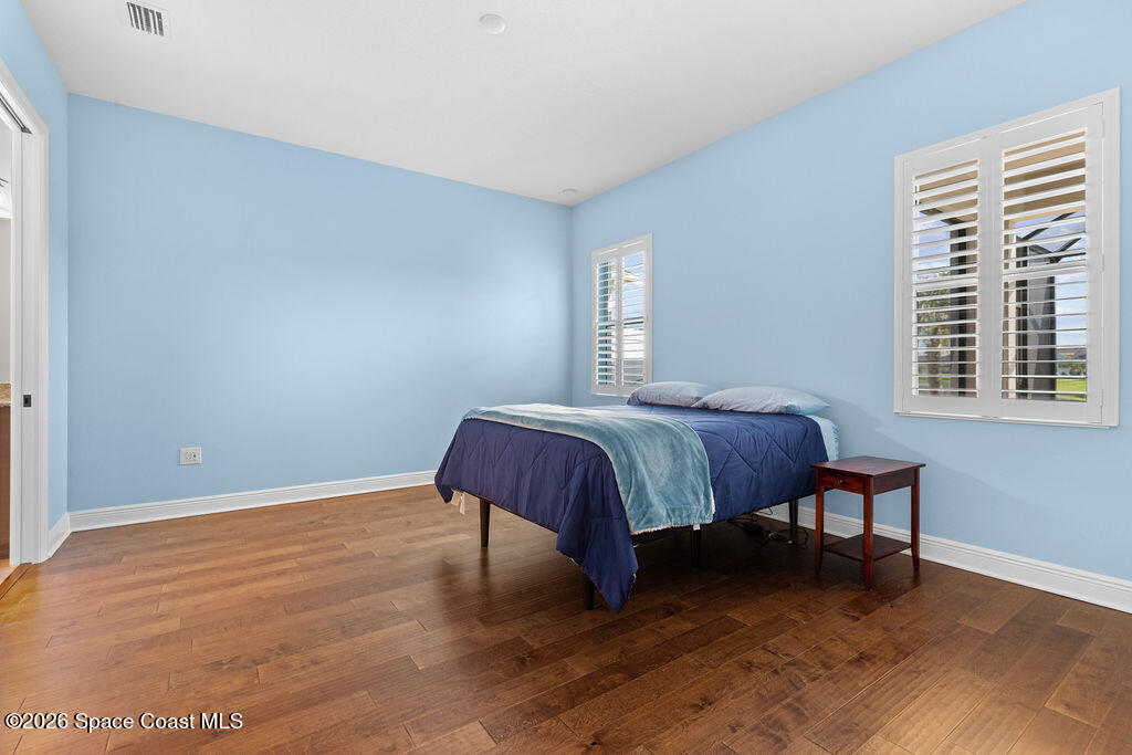 Welcome to 2818 Avalonia Drive, a home that truly stands apart in Viera West. After construction was complete, the owner thoughtfully invested in 47 additional upgrades, and you can feel the difference the moment you walk in. This 3-bedroom, 2-bath townhouse offers 1,481 sq ft of space that feels warm, polished, and intentionally designed for everyday living. Hardwood floors run throughout the living areas and bedrooms, creating a seamless, inviting flow. The open layout is bright and comfortable, enhanced by eight-foot interior doors, 5 1/4'' base molding, and relaxed Key West-style shutters that add personality without feeling overdone. The kitchen is both stylish and functional, featuring higher-end stainless steel appliances, soft-close cabinetry, and under-cabinet lighting that makes evenings feel calm and cozy. Thoughtful upgrades continue behind the scenes with pre-wiring for speakers, TVs, and security cameras, along with impact windows and an epoxy-coated garage floor.