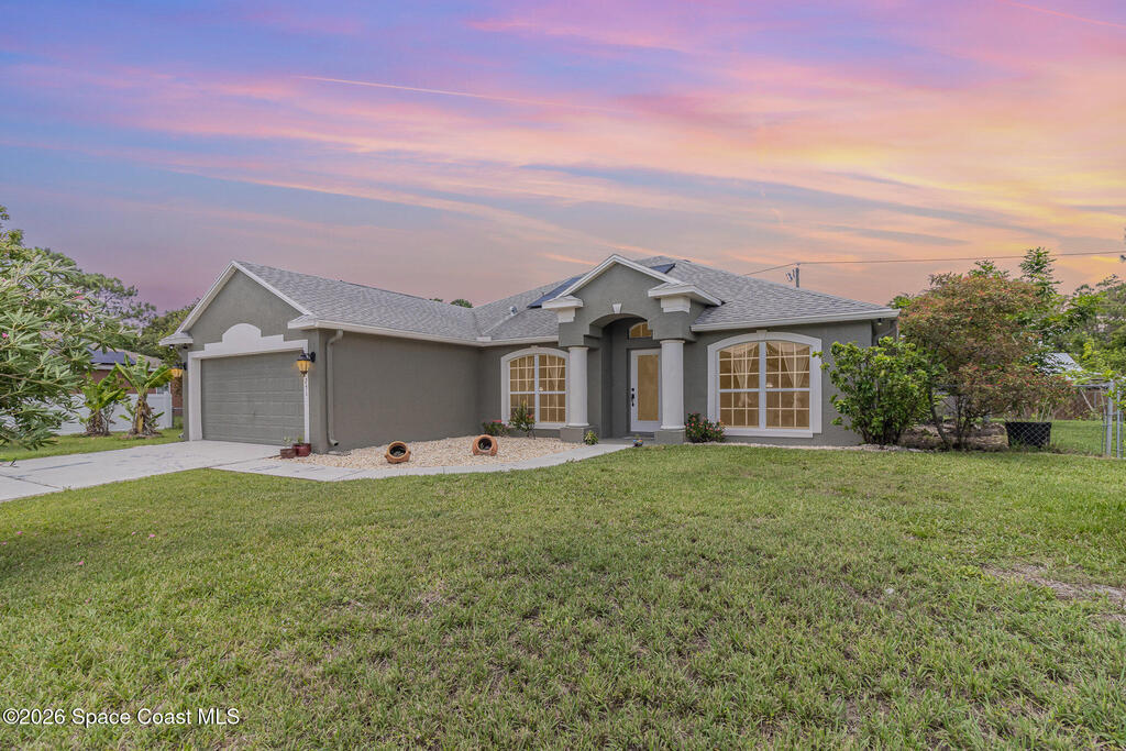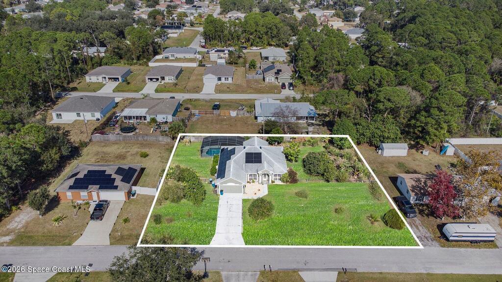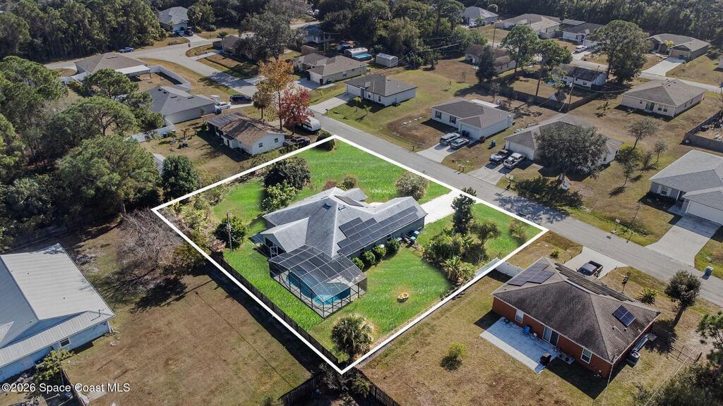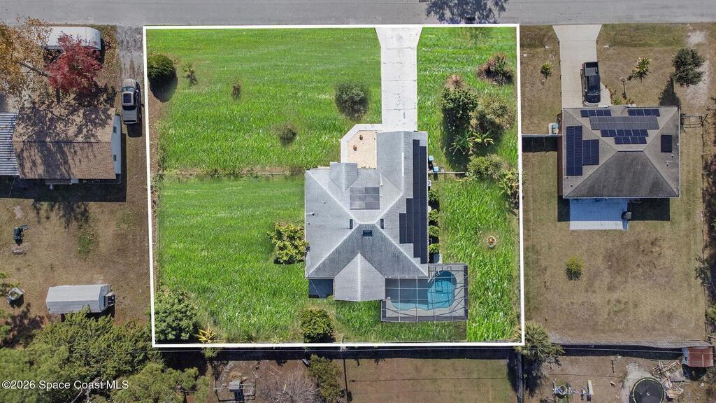 Live off the land in this Tropical Oasis! 4-bedroom, 2-bath pool home on a double lot totaling .46 acres, fully fenced with sprinkler system. Enjoy Florida living with a SCREENED POOL & WHOLE HOUSE SOLAR. Caribbean-inspired edible landscaping, and plenty of room to roam with no HOA. Step through the etched-glass front door into a spacious formal living and dining area. The vaulted-ceiling kitchen offers generous space and opens to the family room, perfect for entertaining. French doors lead to a covered lanai overlooking the pool and tropical backyard with fruit-bearing trees and edible plants (see document tab for full list). Split Floor-plan with 4 spacious bedrooms and indoor laundry. Major updates include Roof 2018, HVAC 2019, Water Heater 2024, Well Pump 2024, Dishwasher 2025. Your new home awaits - make it yours today!