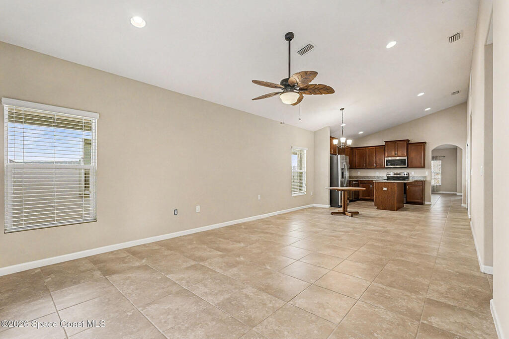 Ceiling Fan(s) , Kitchen Island , Open Floorplan , Pantry , Primary Bathroom -Tub with Separate Shower , Split Bedrooms , Vaulted Ceiling(s) , Walk-In Closet(s)