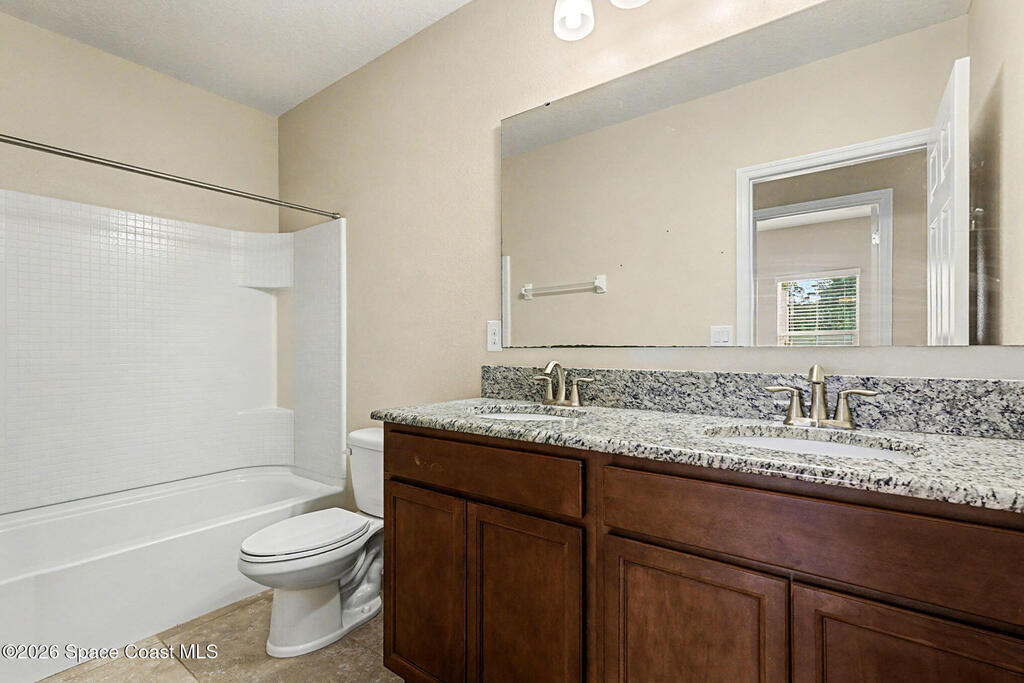 Freshly painted, light and bright 3BR/2BA home with 2-car garage located in the desirable Wellington community of Bayside Lakes. Features include accordion hurricane shutters, spacious kitchen with granite countertops, large pantry, and ceramic tile flooring throughout (no carpet).Separate indoor laundry room. Primary bedroom offers bonus area ideal for nursery, art studio, reading, area or home office. Covered 8x16 trussed porch and PVC privacy-fenced backyard. Community amenities include 2 pools, fitness center, 2 playgrounds, and excellent schools. Conveniently located near shopping, dining, entertainment, I-95, and beaches.