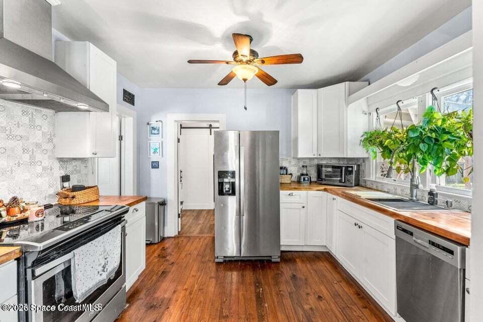 Endless Possibilities in this EGAD Historic Home. Main Home is a lovely historic 2 bedroom 2 bath gem in growing EGAD! Access to home gym with peloton! Metal Roof 2019. Plumbing and electrical updated. Fenced private backyard for entertaining. Property is fully furnished and 1 block to River, 5 min to Ocean and located in downtown EGAD - walk to area restaurants and shops. This rental shares a backyard space with a tiny home and loft above the garage/gym.