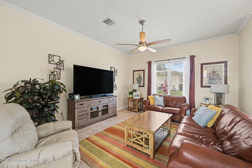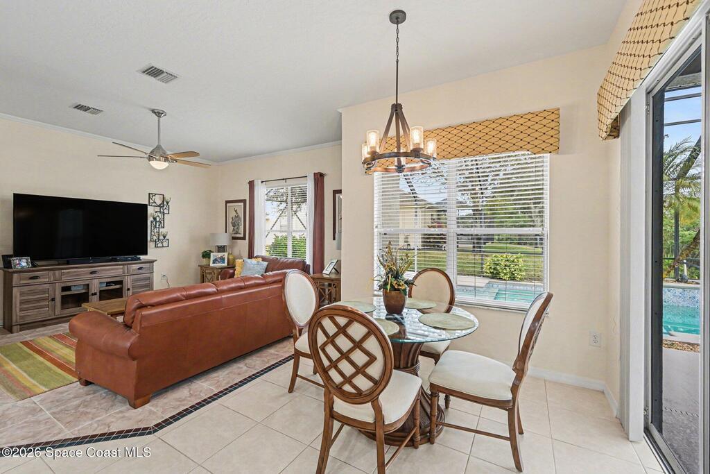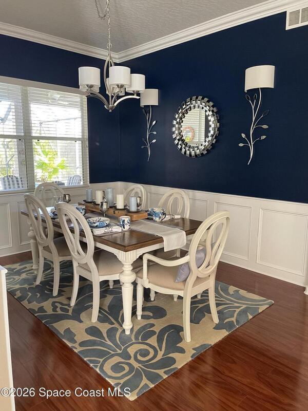 Welcome to this beautifully maintained 4 bedroom, 31/2 bath pool home in The Preserve at Grand Haven. Ideally positioned just minutes from the beach, Patrick Space Force Base, premier shopping, dining, I95 and US1. The split level design with soaring ceilings showcases serene views of the screened lanai, sparkling pool and protected natural preserve from nearly every room, offering refined Florida living. The home features formal living and family rooms, a well appointed kitchen with granite countertops, stainless appliances and breakfast nook along with an elegant dining room accented by wainscoting and crown molding. The private primary suite offers dual vanities, a garden tub, and walk in shower. Two additional bedrooms and baths on lower level while the upstairs retreat provides a bedroom, bath and separate living area ideal for guests or in law quarters. Outdoor living is enhanced by a covered lanai, pool and pool bath. Exceptional amenities and scenic walking trails.