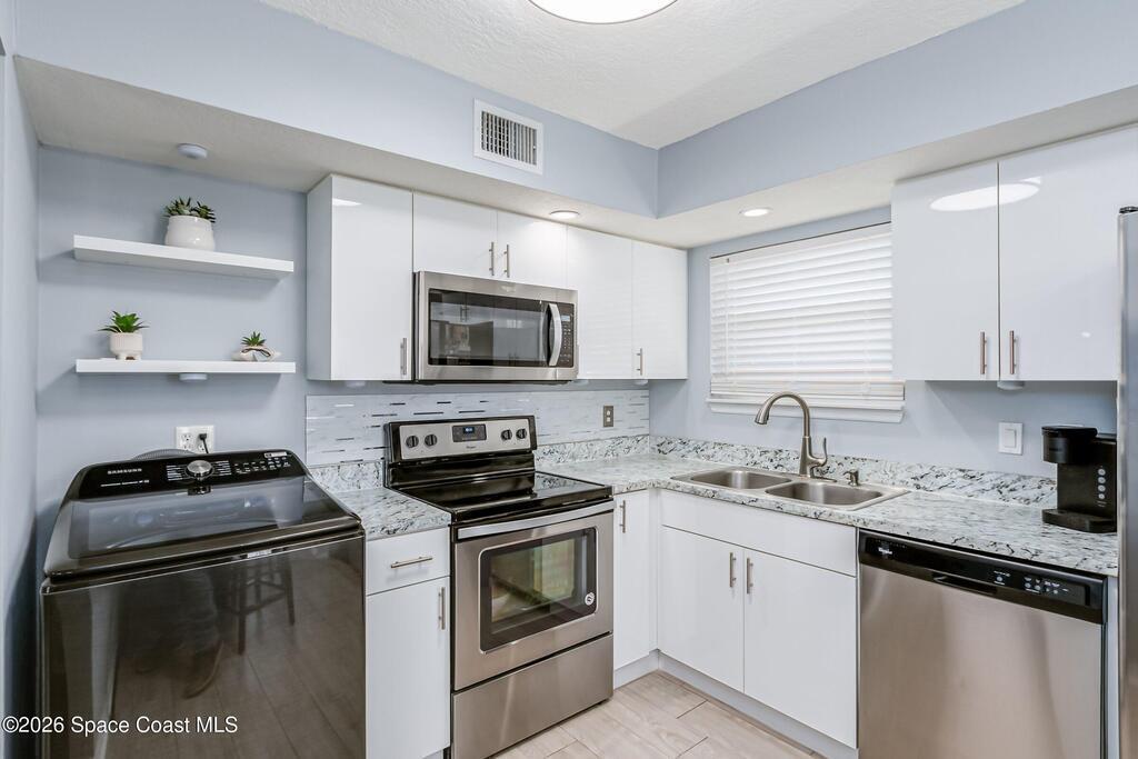 🏡 Seller will have all existing cast iron drain lines rerouted to PVC lines prior to closing with acceptable offer. Beautifully updated 3-BR, 2-BA CONCRETE BLOCK retreat where modern comfort meets true Florida freedom. ✅With a 2018 roof, 1 year old HVAC and hot water heater plus IMPACT GLASS, this move-in-ready home offers peace of mind and stylish living. Enjoy contemporary finishes, an updated kitchen with new cabinetry, countertops, and stainless appliances, plus washer and dryer included. The primary suite features French doors and a walk-in closet. No HOA or Rental Restrictions. CITY WATER & SEWER! A side-entry carport adds convenience, security, and future expansion potential. Outside, the fully fenced backyard offers a patio, mature shade trees, storage shed, and room for a pool--ideal for relaxing or entertaining.📍Located in a sidewalk-safe neighborhood just minutes from Captain's House boat launch (manatees!), the Indian River, shopping, dining and South Brevard beaches.