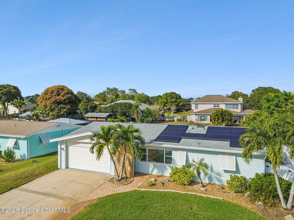 Welcome to 1460 Hannah Drive! Adorable and updated, this waterfront pool home is MOVE IN READY. Located on a nice quiet street in Merritt Island, this home has been completely re-piped with PVC and boasts a new roof in 2021 with Tesla solar panels and a new Tesla Powerwall for an amazing average electric bill of only $60 per month. Enjoy indoor/outdoor living in this very cute home featuring Kraftmade cabinets, granite countertops and stainless-steel appliances. Enjoy the beauty from the indoors or outdoors. Check out the view from the impact windows in the dining room/enclosed Florida room with attached glassed in patio. Sit outside by the energy efficient, low maintenance fiberglass pool overlooking the canal and watch the wildlife! Add your finishing touches to the back deck landscaping and you have your very own tropical oasis. Come see this today!