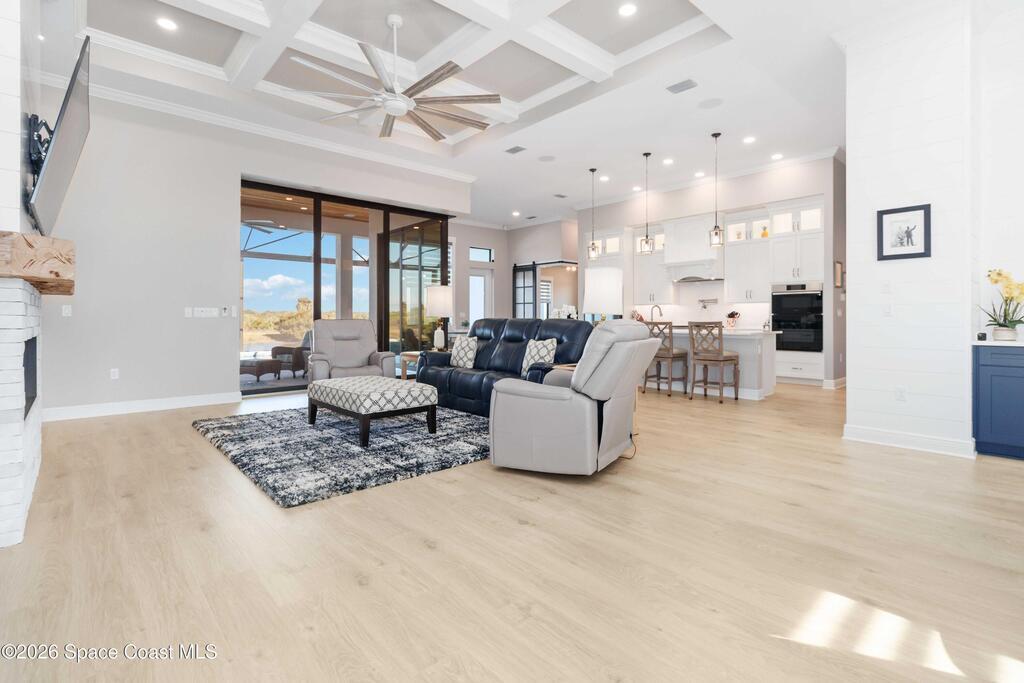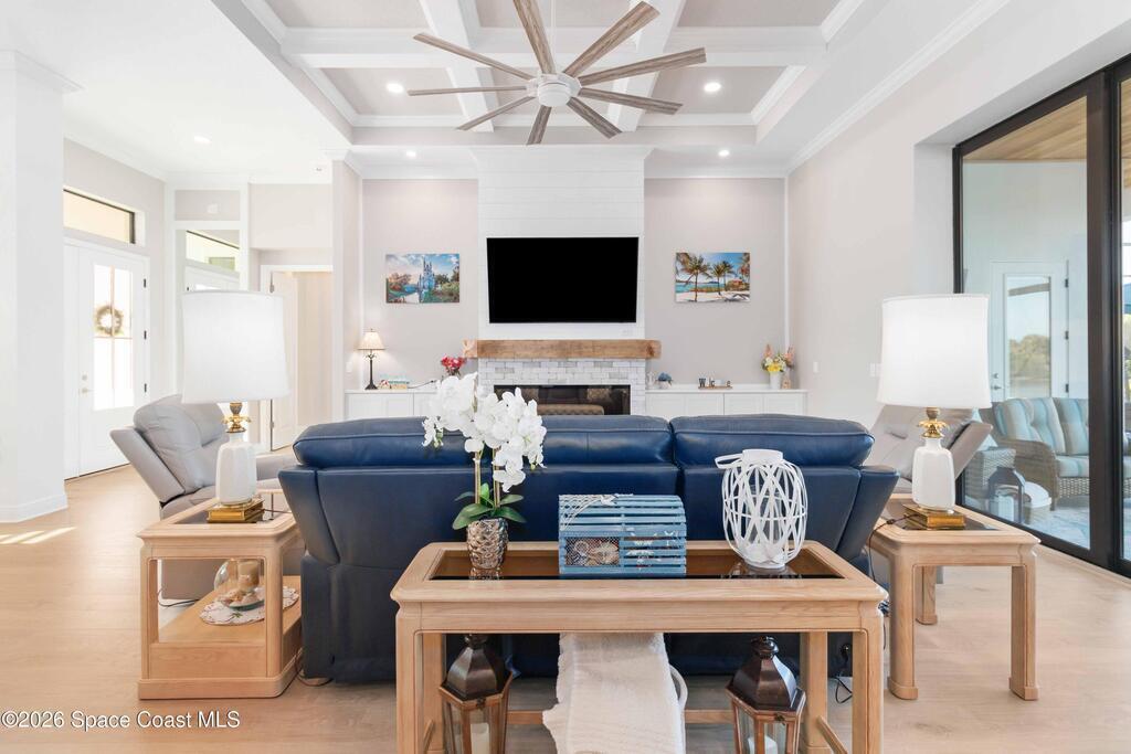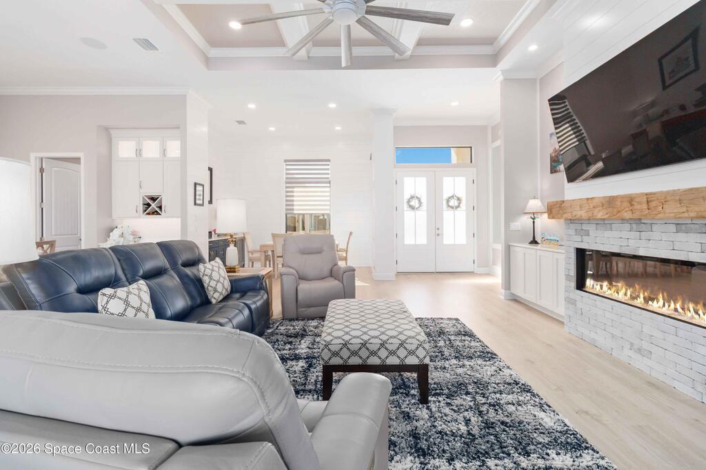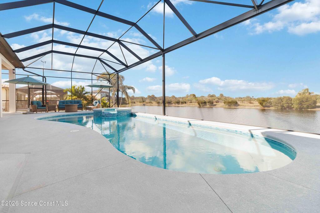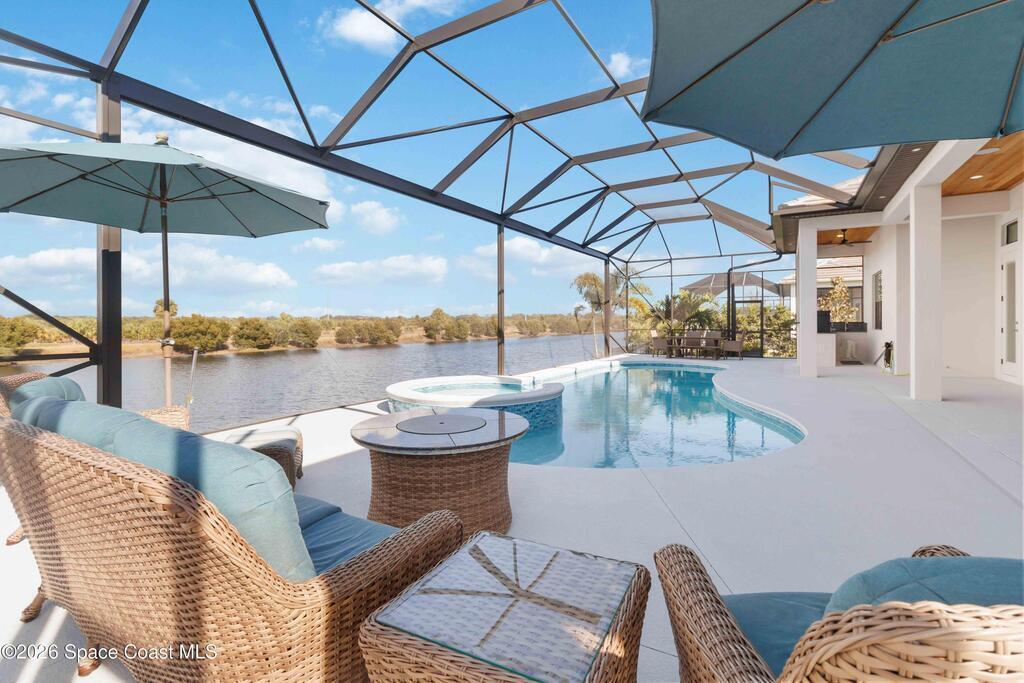 No expense was spared in this custom 2024 Lifestyle Home, with over $350,000 in upgrades. Designed with Coastal elegance, high-end features, and long-term efficiency. This gem offers upgrades throughout. With panoramic lake views, rocket launches, a huge heated pool & spa, and outdoor kitchen you will enjoy real Florida living. Included are solar panels, whole house Generac generator supported by a 1000-gallon propane tank. Impact windows. Dual A/Cs, Rainbird irrigation, surround sound, and so much more. The luxury main bath with huge shower is wheelchair accessible and offers his/her custom closets. The Chef's Kitchen features a gas range, cabinet pull-outs, pantry with built in shelving, and overlooks the light and bright living/dining area. The fireplace shows off a recycled bar beam mantle, The laundry rm, separate mudroom leads off of the pristine oversized 3 car gagrage with built in storage and work bench. perfect for the car collector! Skip the time and expense of building!