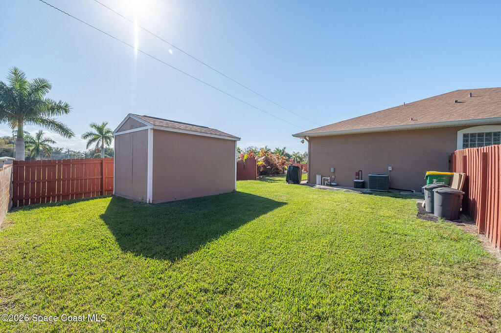 Corner lot on a quiet dead-end street in desirable North Merritt Island! This 4-bedroom, 3-bath pool home with a 3-car garage offers the perfect blend of space, privacy, and coastal lifestyle. The split floor plan provides room for everyone, while the open kitchen and dining area create an inviting space for gatherings and everyday living.Step outside to a private backyard featuring a privacy fence, updated pool deck ideal for entertaining, and plenty of grassy space for pets to play. A low HOA of just $275 per year includes access to Indian River fishing right at the end of the street--bring your fishing pole and your golf cart!The screened 3-car garage is perfect for projects without the mosquitoes, and the home is equipped with newer stainless steel appliances plus a trash compactor for added convenience. This one checks all the boxes--don't miss the opportunity to see it for yourself!