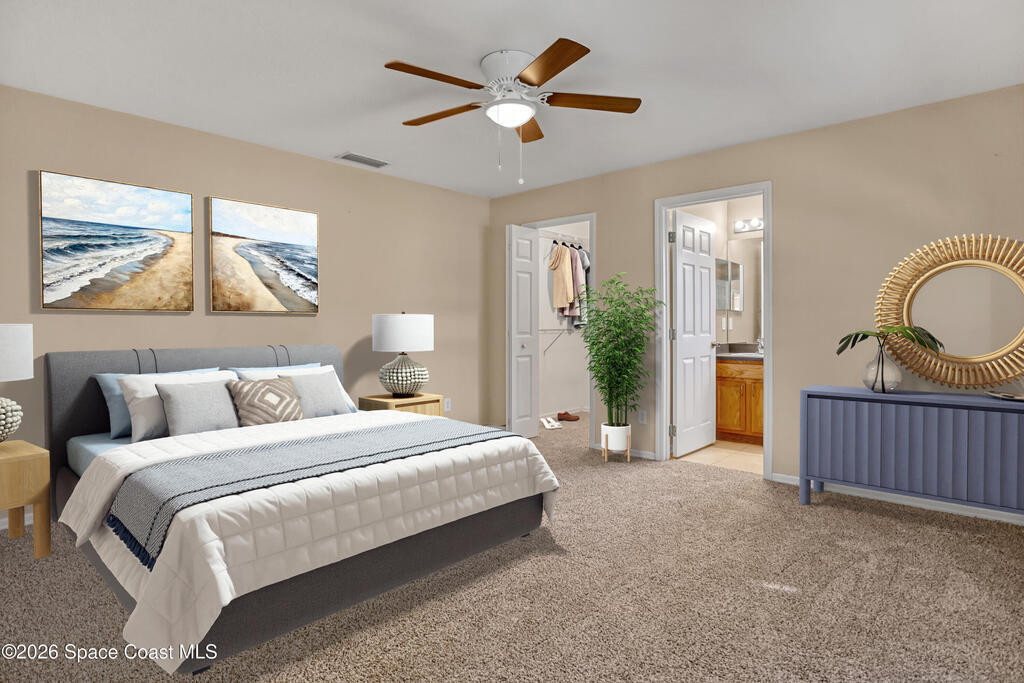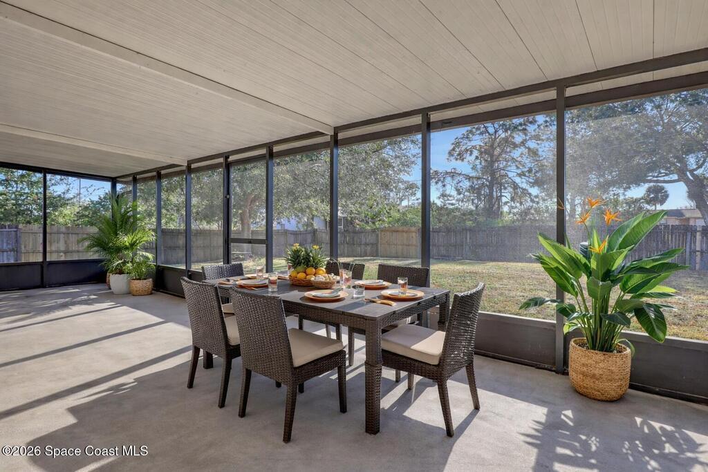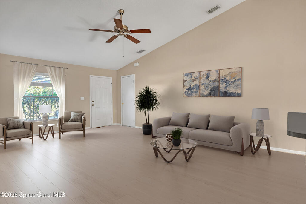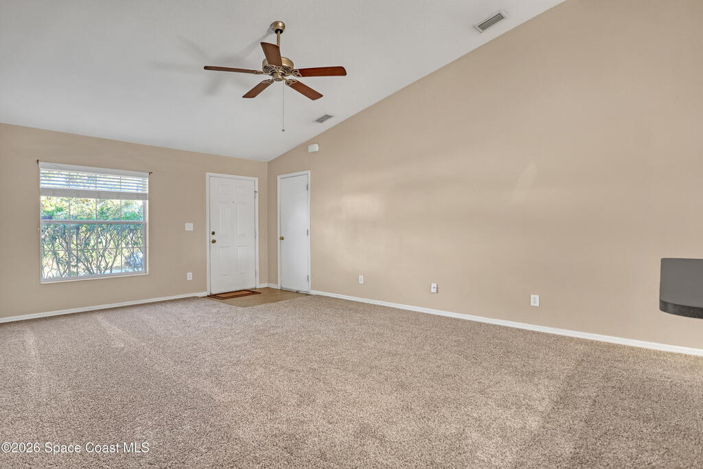 New roof. Large, screened porch. Fenced yard. This vacant, move-in ready home puts the must-haves front and center, plus brand-new carpet throughout. Inside, you'll find a vaulted ceiling, natural light, comfortable, functional split layout that's easy to love, ideal for first-time buyers, those looking to downsize, or investors. Out back, the ginormous screened porch spans the entire home, perfect for morning coffee, evening cocktails, and weekend gatherings. The fully fenced backyard with a fire pit offers room for pets, play, gardening, or fireside nights. Bonus perks include a wind mitigation report, storm panels, & a security system. Conveniently located close to shopping, schools, local attractions, and with quick access to I-95.