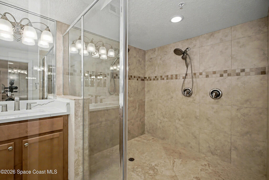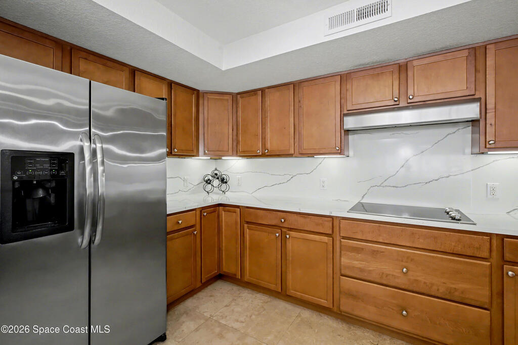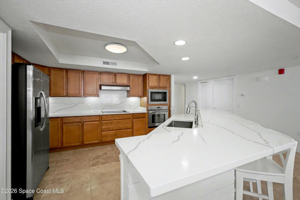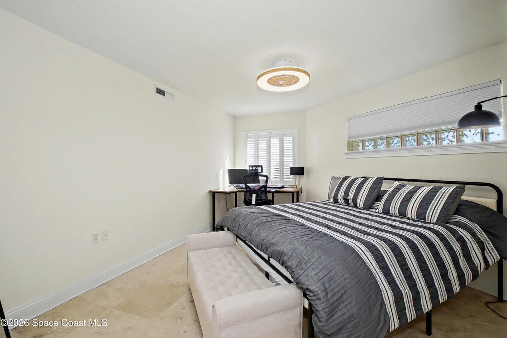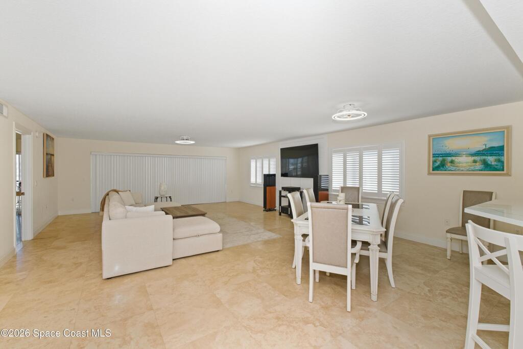 Coastal Living at its finest, Steps to the BEACH, PRIME LOCATION! Beautifully designed 3-bedroom 2-bath Desirable SE End unit condo lends over 2,000 sq ft of light-filled living space with travertine tile throughout. Partially Furnished The open-concept layout features modern fixtures ,and a gourmet kitchen with white quartz waterfall island, custom wood cabinetry, and SS appliances. Enjoy morning sunrises and ocean glimpses from the screened balcony, plus coastal breezes year-round. The split floor plan provides privacy, with a spacious primary suite featuring a spa-inspired bath and dual-head shower. Additional highlights include generous closet space, bike storage, and two assigned indoor garage spaces--rare for condo living. Palm Springs Condos offer resort-style amenities including pool, fitness center, clubhouse, tennis and pickleball courts. Steps to the beach and close to dining, shopping, and everyday conveniences--perfect as a primary residence or vacation retreat!