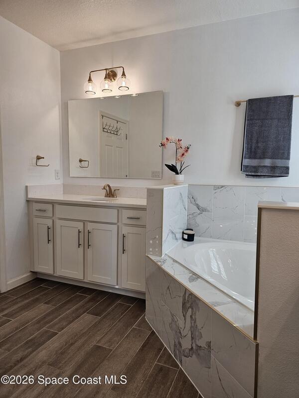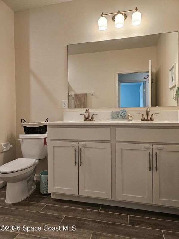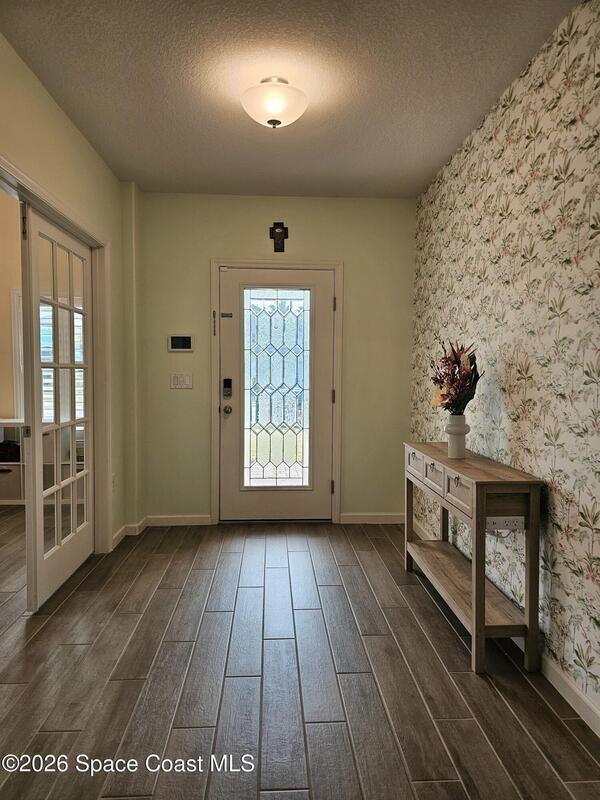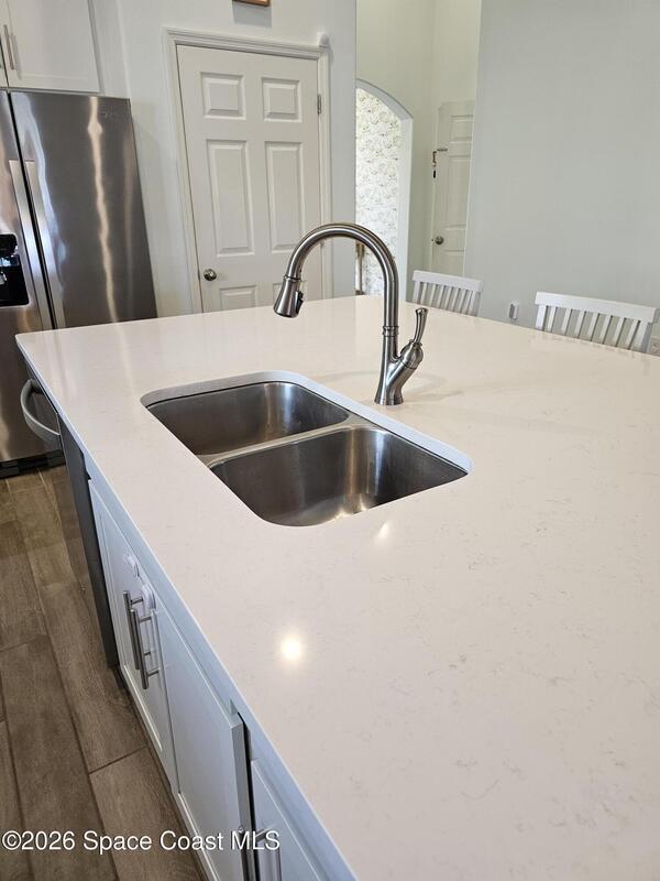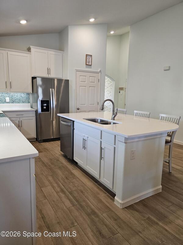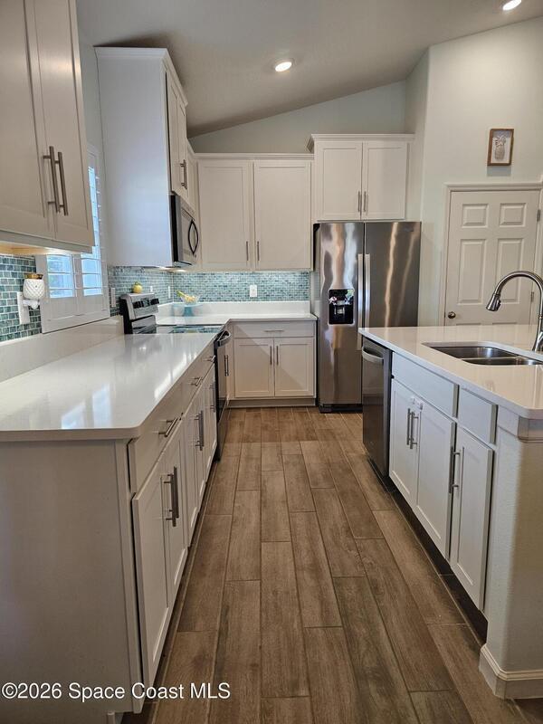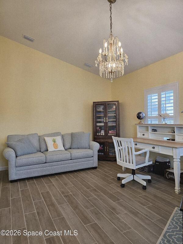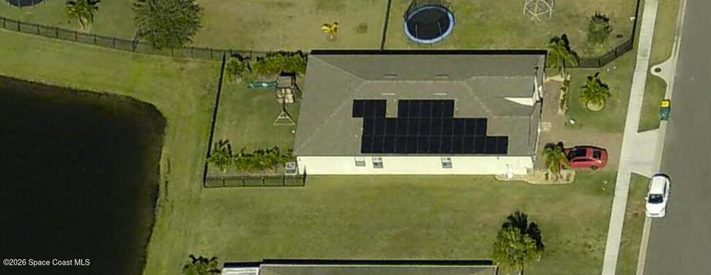 72 Hour Kick Out in place. Solar panels/low electric bill. Immaculately maintained & modern flair. Versatile floor plan w/ 3 bedrooms + flex room, ideal as home office or 4th bedroom. Freshly painted interior, complemented by plantation shutters. Kitchen features white shaker cabinets, quartz countertops, a center island, glass tile backsplash, & a pantry w/ wood shelving & motion lighting. Primary suite w/ double closets & door leading to the lanai. Remodeled en-suite bath boasts gold fixtures & accessories, upgraded floor-to-ceiling tile in the shower w/ a recessed shelf, marble floor tiles, a frameless glass shower door, & matching tile surrounding the soaking tub. Centralized smart hub, Wi-Fi switches, keyless entry, & Ring doorbell, offering efficiency & peace of mind. Enjoy water views from the lanai, a fully fenced backyard, & added privacy alongside w/ adjacent community lot. Paver driveway & front pad, front-load washer & dryer w/ pedestals. 2025 HWH, 2020 Roof, 2020 A/C.