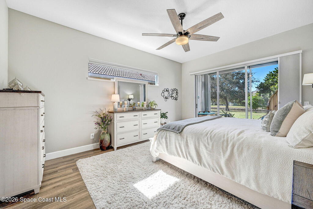 Stunning lakeside estate located in GATED Oceanside Village, short walk to the beach. Recently remodeled, the home features new plank flooring, fresh interior & exterior paint, epoxy garage flooring, a new HVAC system, plantation shutters throughout, upgraded ceiling fans & enhanced lighting ideal for showcasing wall art. Open-concept floor plan seamlessly connects living, dining and kitchen areas, creating a warm and inviting space for entertaining. The well-appointed kitchen includes stainless steel appliances, granite countertops, ample cabinetry, and a breakfast bar with peaceful lake and sunset views. Primary suite is a private retreat, featuring 2 walk-in closets, an en-suite bathroom w/dual vanities, soaking tub & separate shower. Step outside to your private backyard oasis w/screened in patio & lakeside deck-perfect for relaxing, entertaining & bird watching. The best beachside location close to everything. Community offers unbeatable amenities! Pride of ownership.