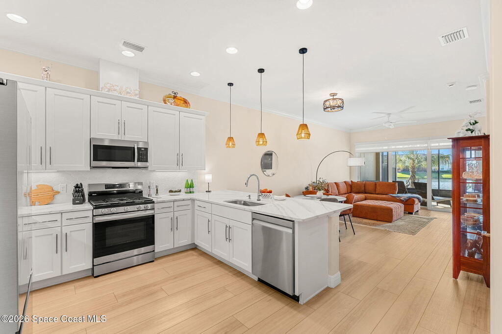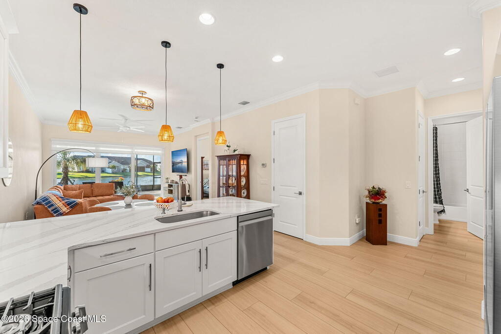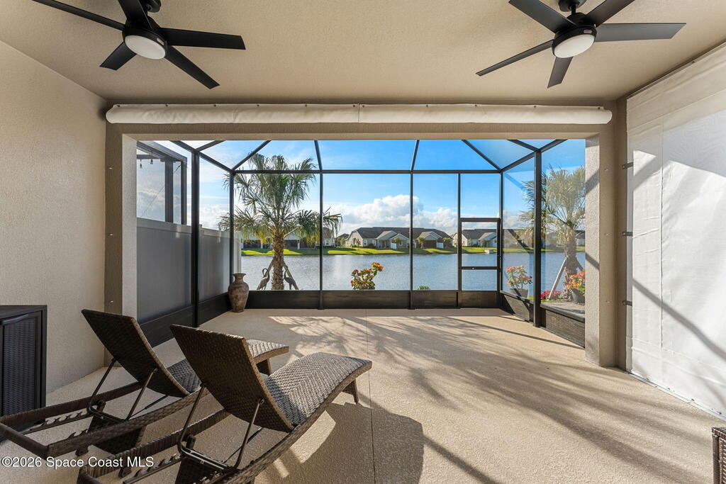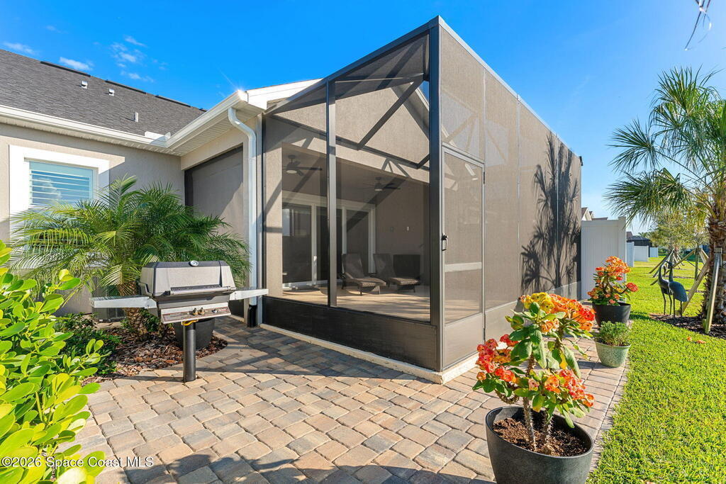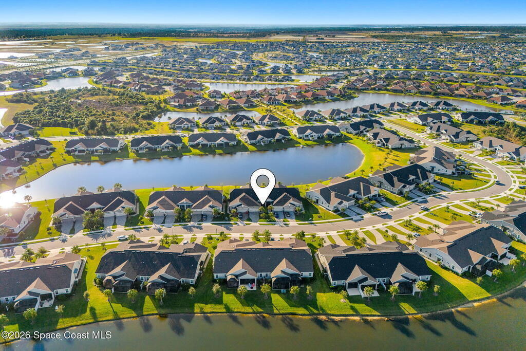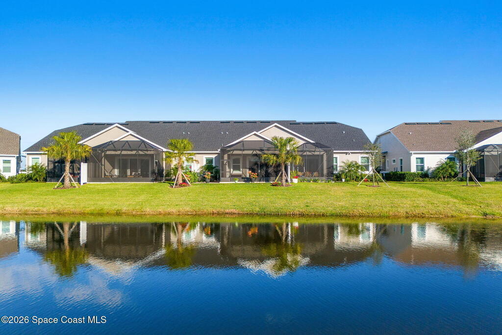 If you've been dreaming of the Viera lifestyle without the typical Viera price tag, this is the one. Built in 2024 and thoughtfully upgraded from top to bottom, this 3 bedroom, 2 bath home offers the ease of townhouse living with the feel of a custom residence. From the moment you step inside, you'll notice the difference. Luxury vinyl plank flooring, upgraded cabinetry, premium countertops, designer tile details and custom touches throughout create a space that feels polished, comfortable and completely move in ready. The owners have gone beyond the builder basics with a whole home water softener, custom closets, window treatments, upgraded fixtures and a beautifully finished primary bath with a frameless glass shower. (See upgrade list attached) Step outside and enjoy peaceful pond views from the screened lanai, unwind on the extended paver patio, and take advantage of the built in natural gas grill connection with additional paver space designed for easy outdoor entertaining.