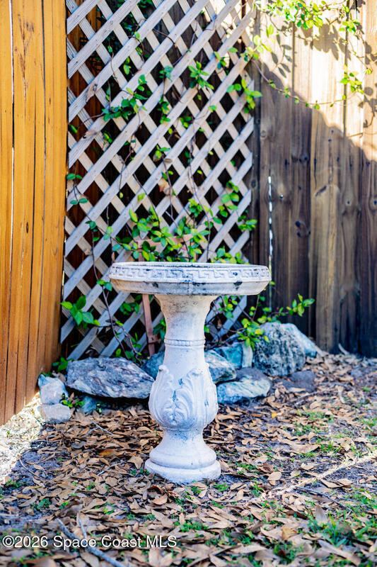 Utilities and yard maintenance included! Tesla/EV charging station available. Live under the oaks in one of Melbourne's best-kept secret neighborhoods! This island vibe home has 3 bedrooms and is not your typical generic rental. Bursting with character, the living area showcases rustic beam ceilings and wood-look tile floors for a warm, inviting vibe. The on-trend, updated kitchen features a beadboard ceiling, tin-look backsplash, under-cabinet lighting, glass-top stove, dishwasher, wood countertops, and a center island perfect for cooking and entertaining. Enjoy a split floorplan with a large primary bedroom highlighted by a dramatic wood-look accent wall, plus new wood laminate in all bedrooms. The spacious indoor laundry room includes washing machine and new dryer. Step outside to your own private oasis: a fully fenced side yard, lush landscaping, and sweeping oak trees draped in moss. Peaceful, PRIVATE, picturesque--and truly one-of-a-kind.