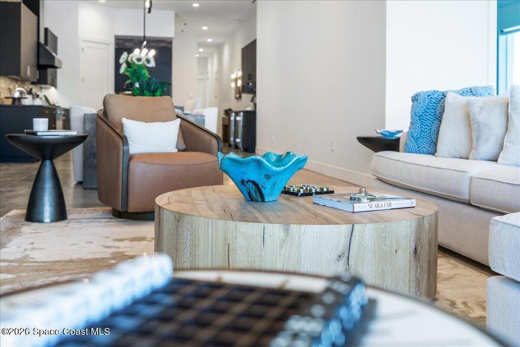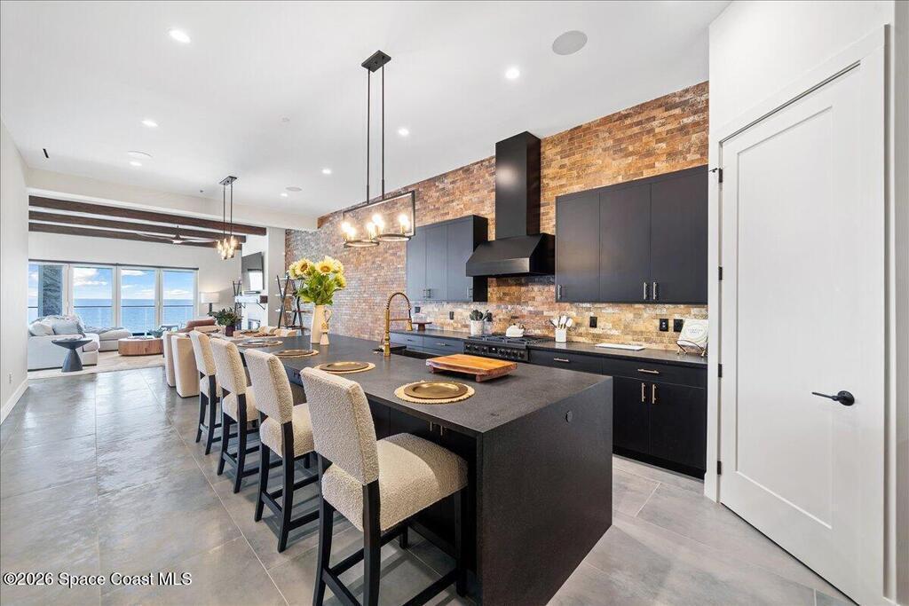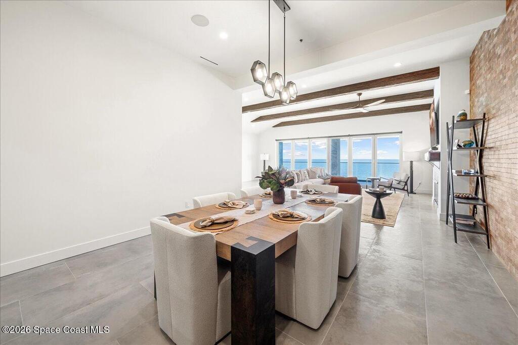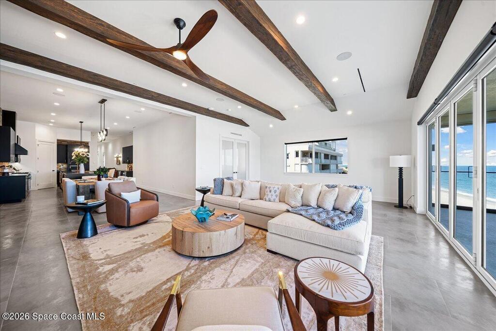 Completed in 2024, this oceanfront penthouse represents a rare new generation of luxury along Brevard's coastline, where most condominium buildings are decades old. Opportunities to own in a building of this modern caliber are exceedingly limited, and even more exceptional is that this residence was never finished with standard builder selections. Instead, it was extensively customized throughout, creating a home that feels architectural, intentional, and entirely one-of-a-kind.One of only two residences in the building to feature a private, exterior-access two-car garage with a secure interior entry into the private vestibule, this penthouse offers an uncommon level of convenience, security, and exclusivity. Spanning 2,820 square feet under air, the three-bedroom, four-bath floor plan was thoughtfully redesigned to live like a single-family home while maintaining the ease of boutique condominium living.
