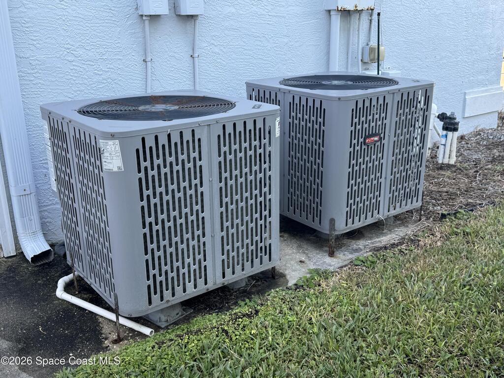 This well maintained two story home is located a short walk to the community beach access and park. New A/C's in Jan 2024 and June 2024 (2 units). Overhaul and upgrade of entire home water filtration system and well piping. The entire interior is freshly painted. On the first level is the primary suite w/new tile hardwood floor. Elegant primary bath that has garden tub and separate shower. Two bathrooms have sliding glass tub/shower doors. Both bedrooms have wood floors. The second level is huge open great room with slider to tiled balcony that has some ocean views. There is also another bedroom and full bath on this level. The kitchen has big center island and lots of cabinet space. New refrigerator and dishwasher. Large 2 car garage. Big backyard has shed with repairs including roof. Screened in lanai. Entire yard has been newly landscaped. Huge driveway with circle so easy access for vehicles and lots of parking! Also listed for rent.