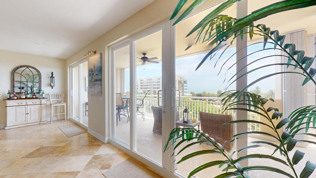 Step into luxury in this stunning fourth floor exquisite condominium located at Ocean Dunes in Aquarina. The elevator opens right into your unit and you will be impressed as you enter w/ the incredible ocean views from the wall of glass sliders that open to your private balcony. Travertine flooring throughout. Granite and S/S chef's kitchen opens to the spacious great room offering many opportunities for entertaining. Breakfast bar area has room for stools. The dining room is elegant and situated right off of the kitchen. Spacious primary bedroom has his and her customized closets. Elegant large master bath has garden tub, double vanity and separate shower. Each bedroom has its own bath + walk in closet. Bonus area perfect for office. The back lanai is spacious and offers golf course views w/ spectacular sunsets. Community gym and access to tennis courts. Beach clubhouse, river pier/boat launch. Community heated pool has fire pit and grill and is located just steps away from condo.