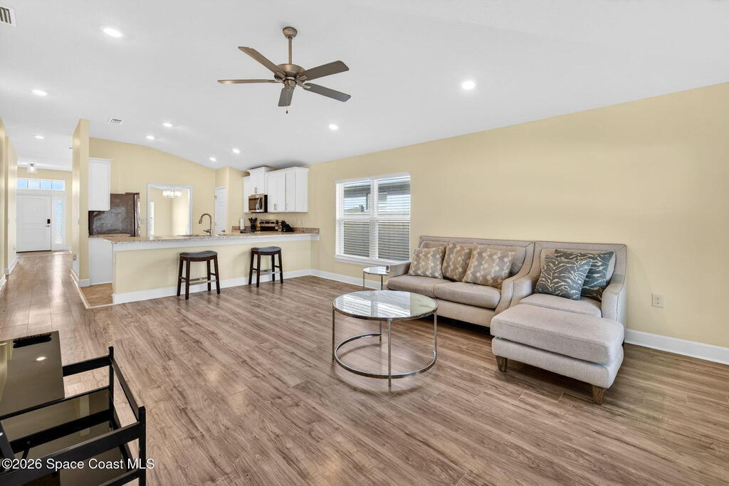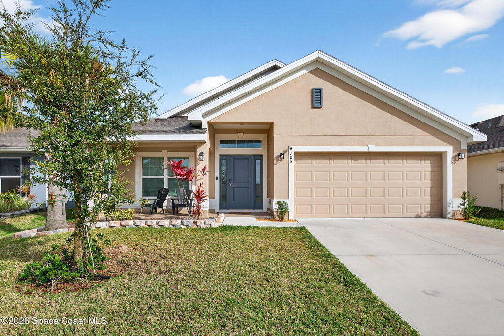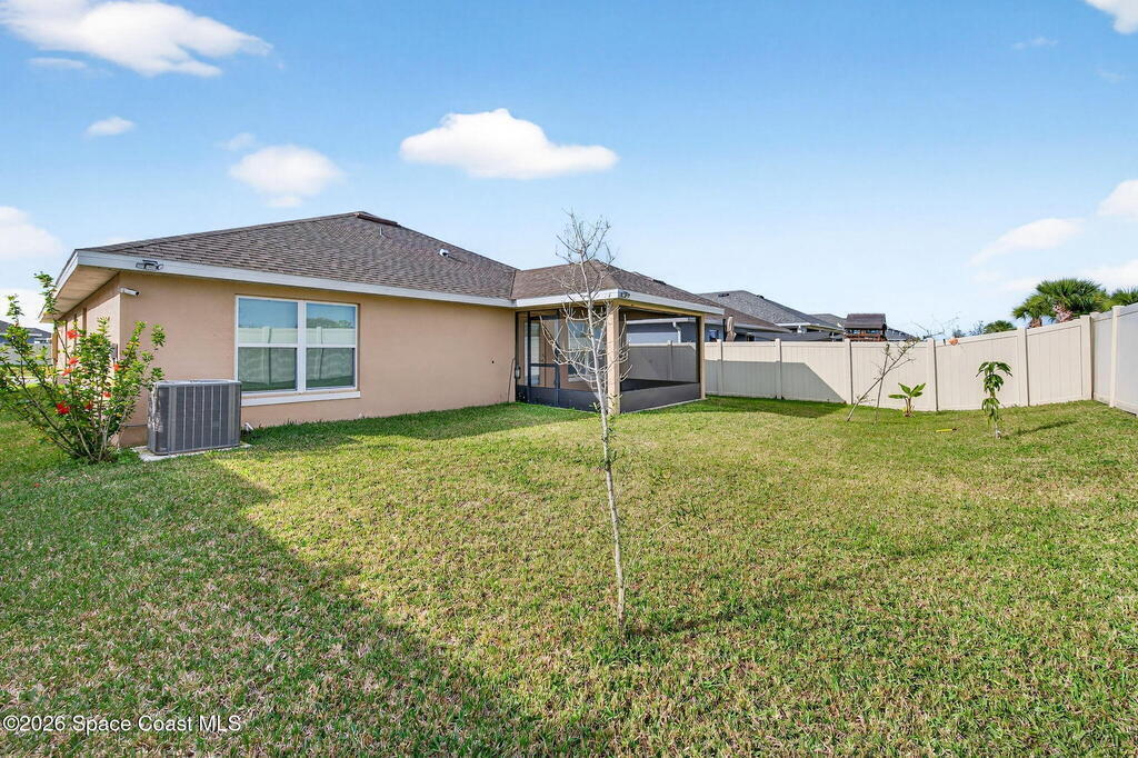Your dream home awaits in this well‑maintained 3‑bedroom, 2‑bath residence located in a quiet Palm Bay neighborhood. The home features an open living and dining area, a bright kitchen with ample cabinetry, and a spacious primary suite with a private bathroom. Laminate flooring runs throughout the main living spaces, offering durability and easy maintenance.A covered lanai extends your living space outdoors, providing the perfect spot for relaxing or entertaining. The large backyard offers plenty of room for activities, pets, or future improvements. Concrete block construction and an attached garage add long‑term value and convenience. Community Features-Community poolCaban, well‑maintained common areas, conveniently located near shopping, dining, schools, parks, and major roadways including Malabar Rd and I‑95. A new Publix and additional shopping outlets have recently opened nearby. Short drive to Melbourne, local beaches, and major Space Coast employers.