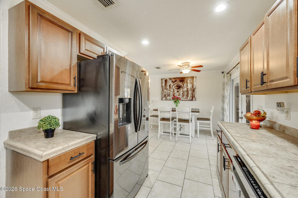 Well-maintained 3-bedroom, 2-bath pool home offering comfort, efficiency, and Florida lifestyle living. The roof was replaced in March 2018, and major upgrades include a 15.33 kW solar system (paid off) installed January 2023 and a Generac whole house gas generator added April 2023 for peace of mind. Inside, enjoy tile and laminate flooring throughout, updated AC ductwork, and textured ceilings--no popcorn. Step outside to a fully fenced backyard with a sparkling pool with Pebble Tech finish and heated hot tub, perfect for entertaining or relaxing year-round. Conveniently located close to beautiful beaches and just about 75 minutes from Orlando attractions. Don't miss this opportunity--schedule your private showing today!
