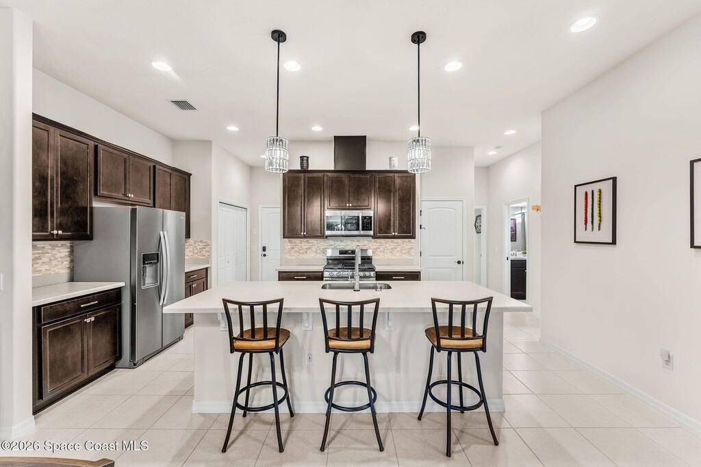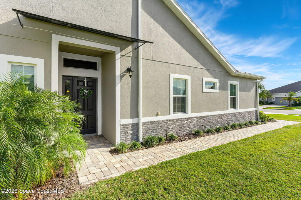 Live the ultimate carefree lifestyle in Viera, Forida in this stylish end-unit, single-story townhome on one of THE BEST LOTS in Avalonia, a rare .21-ACRE Lot! Enjoy privacy with side green space and preserve views across the street. Built in 2023 w/block construction, all windows and the front door are impact-rated. This Monterey II floor plan has 3 bedrooms, 2 baths, 2-car garage, enhanced with beautiful upgrades: 18'' tile floors, wood cabinetry, quartz countertops, a large island w/pendant lighting, stainless steel appliances, and a custom accent wall. Spacious primary suite features a huge walk-in closet w/custom organizers, dual-sink vanity, and tiled shower. Screened porch overlooks the lake. HOA covers exterior maintenance, roof replacement, lawn care. Enjoy Addison Village Club amenities: pools, basketball, tennis, pickleball- just a bike ride away. Close to shopping, dining, top schools. Short drive to the Beach (20 min), Northrop Grumman, L3Harris, KSC, Blue Origin and more