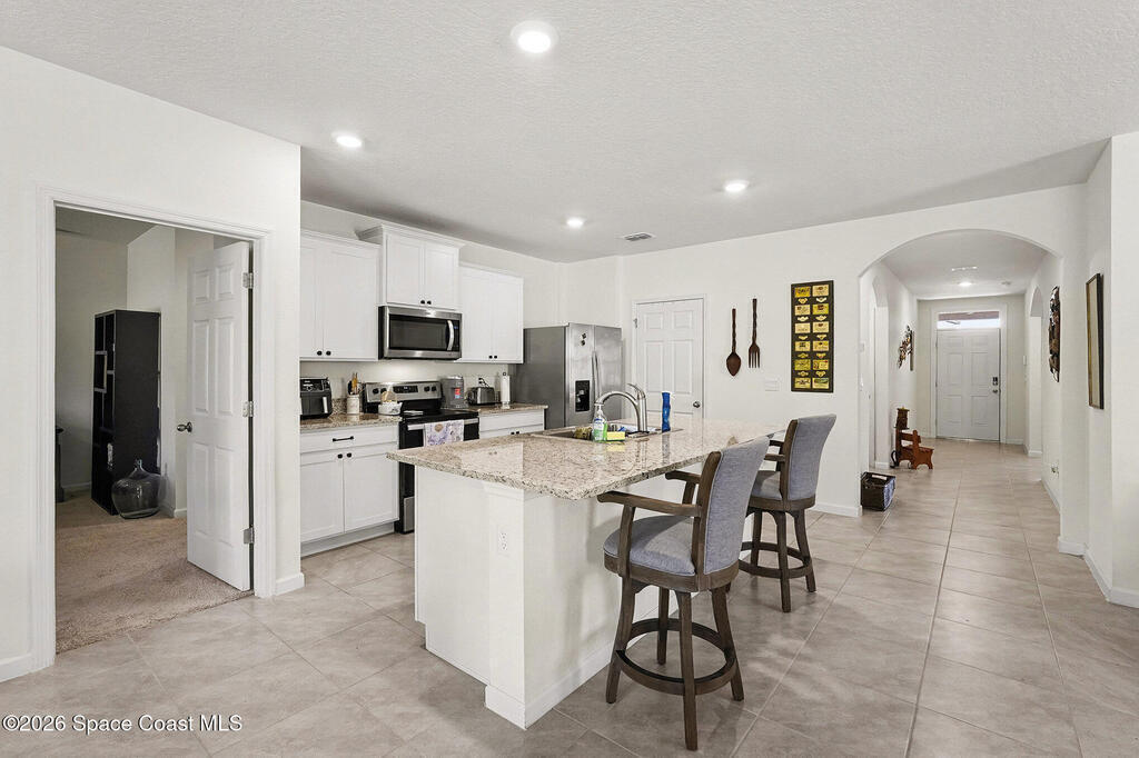 Like New Move-in ready home in the sought-after Gated community of The Preserves at Stonebriar within Bayside Lakes. This meticulously maintained CBS home built in 2022 offers open-concept floor plan designed for today's lifestyle. The chef-inspired kitchen is the heart of the home, boasting bright white 42'' cabinetry with crown molding, sleek granite countertops, and stainless steel appliances. Upgraded ceramic tile flows seamlessly through all main living areas, leading to a spacious primary suite featuring double sinks and a large walk-in closet. The exterior features a covered lanai over looks a private wooded backyard and a paver driveway for added curb appeal. As a resident of Bayside Lakes, you enjoy resort-style amenities: a sparkling community pool, clubhouse, fitness center, basketball, tennis, and a tot lot. No CDD here. This is more than a home; it's a community-driven lifestyle in the heart of Palm Bay. Priced to Sell -schedule your private tour today!