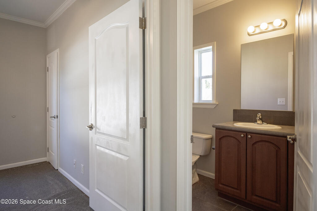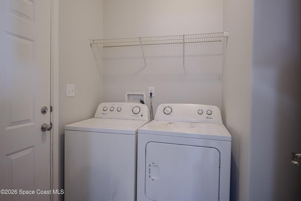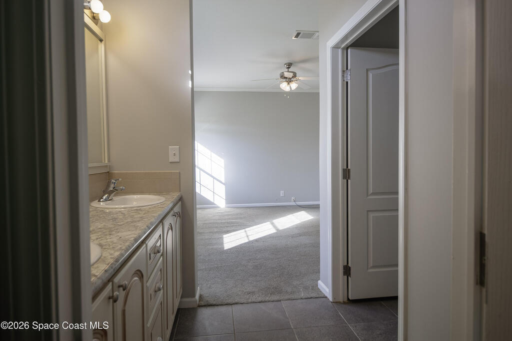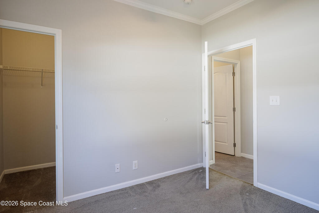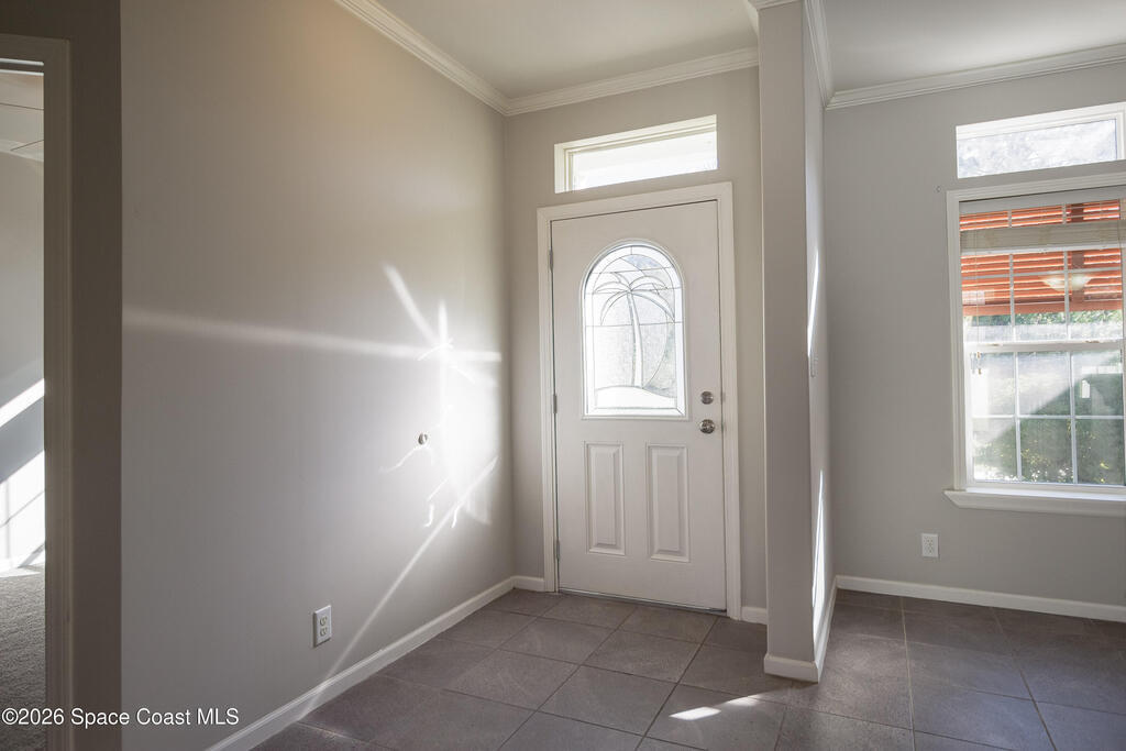 Beautiful 3 bedroom, 2 bathroom home for sale in Palm Bay. Don't miss the opportunity to own this well maintained, 10 year old home. Split layout with primary bedroom suite including new carpet, walk in closet, double vanity bathroom with shower. Two additional nice size bedrooms with ceiling fans and new carpet. The family bathroom has a tub/shower combination. Living room features a ceiling fan and crown molding. Nice size kitchen with lots of cabinets, stainless appliances, center island, breakfast bar adjacent to the dining room. Dining room walks out through the sliding glass doors to the rear patio. Two car garage and interior laundry that includes a washer and dryer. Ready to move in!