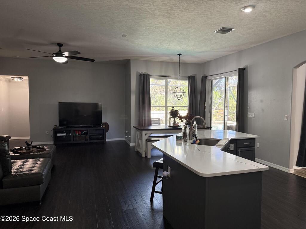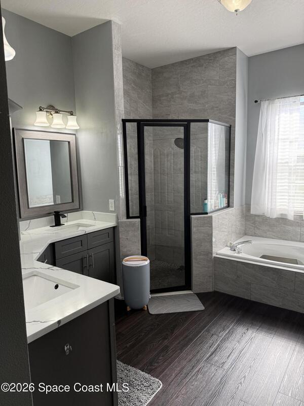 MOVE-IN READY 4/3 gem with pool in Magnolia Park at Bayside Lakes! Home features high end upgrades! Spacious open plan! Laminate and LVP throughout - no carpet! Kitchen has been remodeled and features sleek quartz countertops, newer stainless appliances, and large walk-in pantry. Bedrooms and closets are very spacious. Bathrooms updated for a modern look. Pool area is perfect for entertaining - large screened deck, jacuzzi and 20'x20' fire pit/paver deck space. Yard is fully fenced and backs to protected nature preserve for extra privacy - no neighbors behind. Huge money-saver alert: Newer roof and solar system--only 2 years old! 61-panel oversized solar setup covers90% of your electric bill (often produces more than you use--hello, credits!). Water heater and AC have been replaced within the last 5 years! Exterior painted in 2021. This one-of-a-kind, turn-key beauty in the desirable gated Bayside Lakes community is truly move-in ready and a rare find. Will not last!