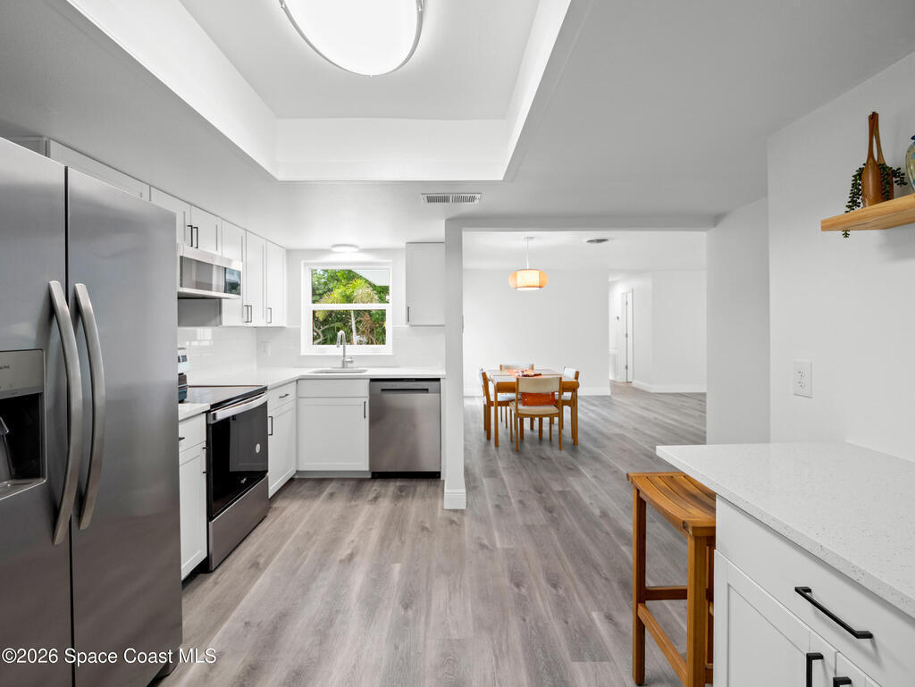 Experience modern coastal living in this fully remodeled Indialantic home, ideally located west of A1A and just steps from the beach. Bright, open living spaces feature updated flooring, fresh finishes, and abundant natural light. The redesigned kitchen offers new cabinetry, contemporary surfaces, and a functional layout perfect for everyday living or entertaining. Both bathrooms have been stylishly upgraded, creating lots of storage space. Spacious bedrooms provide comfort and flexibility for family, guests, or a home office. Outside, enjoy a private fenced in backyard with mature landscaping and a breezy covered patio ideal for relaxing, grilling, or future outdoor enhancements. With its prime beachside location, modern updates, and turnkey appeal, this home delivers the best of Florida coastal living and stands out as a rare opportunity in a highly sought after neighborhood. Text agent today to schedule a private showing before its gone! All buyers welcom
