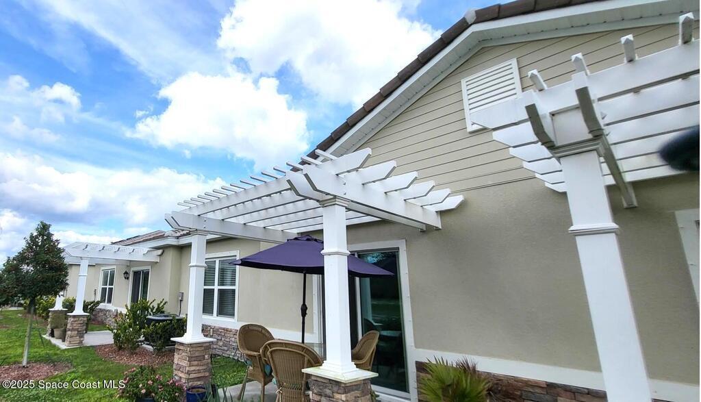 Live the golf community lifestyle here at The Cove at Morrow Place! Showings begin on Thursday 1/15/2026. Come see this incredible single story attached home with high end finishes, tile roof, and inviting backyard with concrete patio and white pergola!Inside features an open floor plan, white kitchen with stainless appliances and granite counters, eating bar with 3 stools, pantry, and tile in all the main living areas. The bedrooms are a split plan with a den/office featuring French doors which is currently used as a music room.The seller installed a high water purification system in the house, so you can skip buying all those water bottles. It has the DR Horton Smart Home tablet, too!This property is almost like new! It has been lived in less than 1 year and now the owner needs to move to help her family. Her loss is your gain!