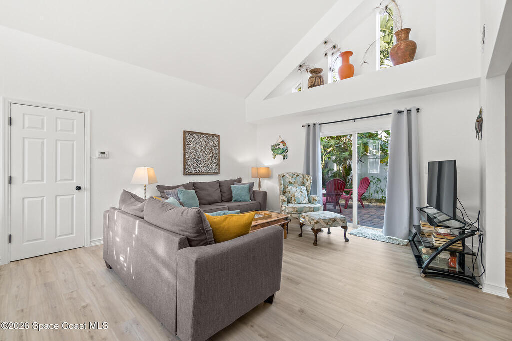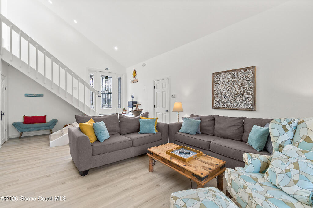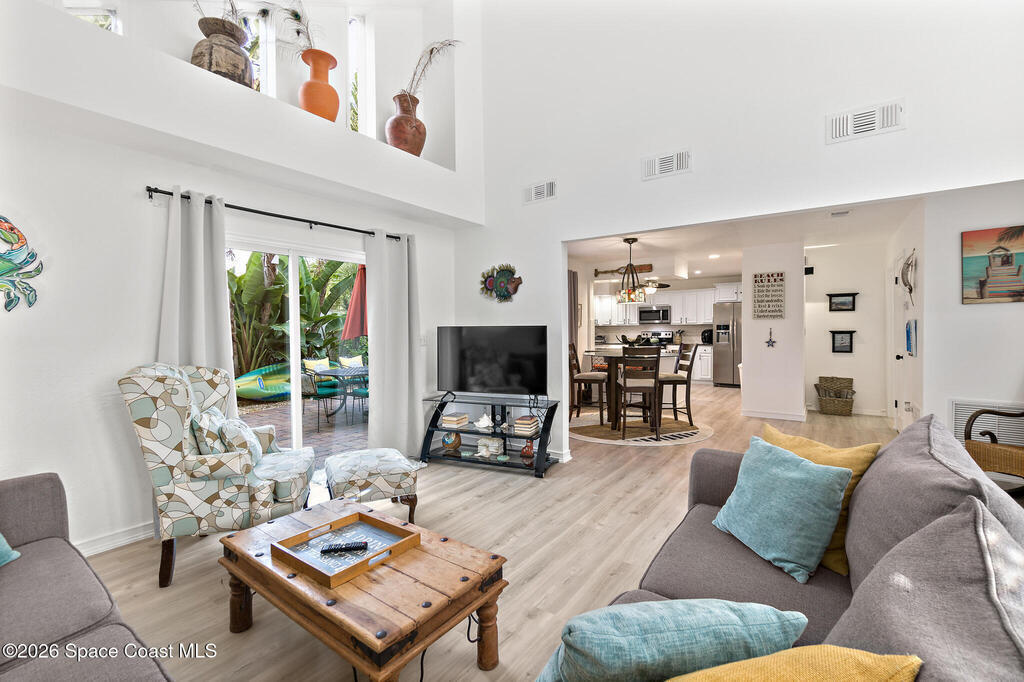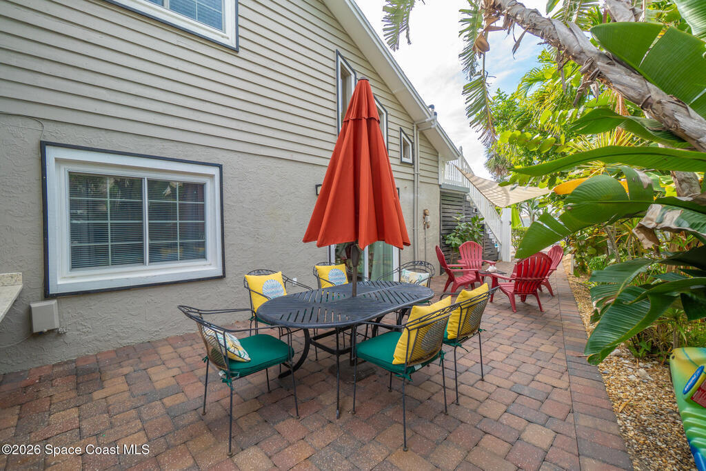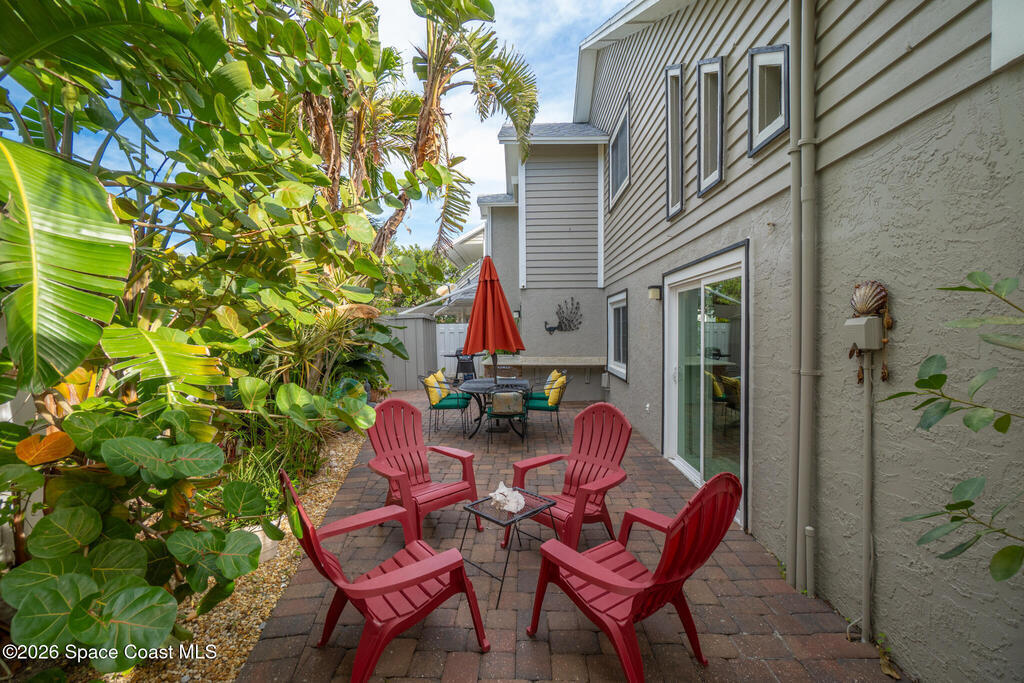 Discover your perfect Cape Canaveral retreat! This stunning 4-bedroom, 4.5-bath pool home offers 2,057 square feet of the ultimate Florida lifestyle ACROSS THE STREET FROM THE BEACH. The open-concept main level features vaulted ceilings, a gourmet kitchen with granite countertops, stainless appliances, breakfast bar, plus two bedroom suites--one with a private patio entrance ideal for guests or additional income. Upstairs, the primary bedroom and a bonus fourth bedroom provide privacy and comfort. The resort-style backyard is an entertainer's dream with a heated pool, outdoor bar, grilling area, privacy-fenced paver patio. Watch rocket launches from your second-floor balcony or rooftop deck with breathtaking ocean views. NO HOA fees, weekly rentals allowed, and Airbnb approval, this property excels as a primary residence, vacation getaway, or lucrative investment. One-car garage and wraparound paver patio complete this exceptional home. Don't miss this rare opportunity! Furnished too!