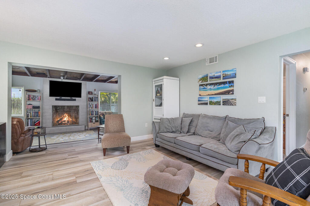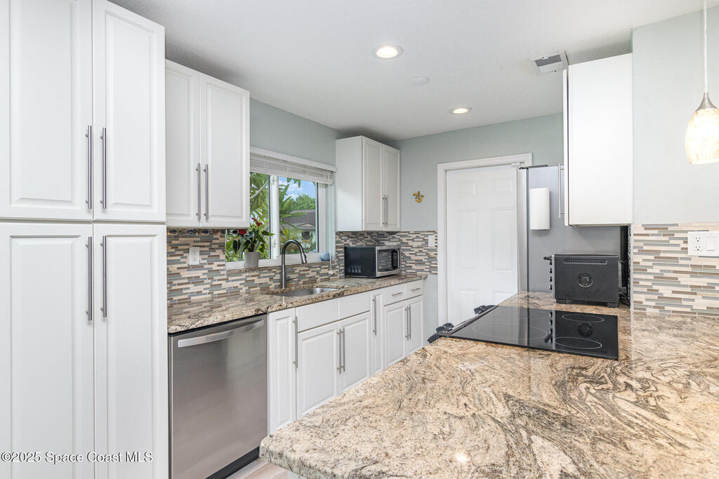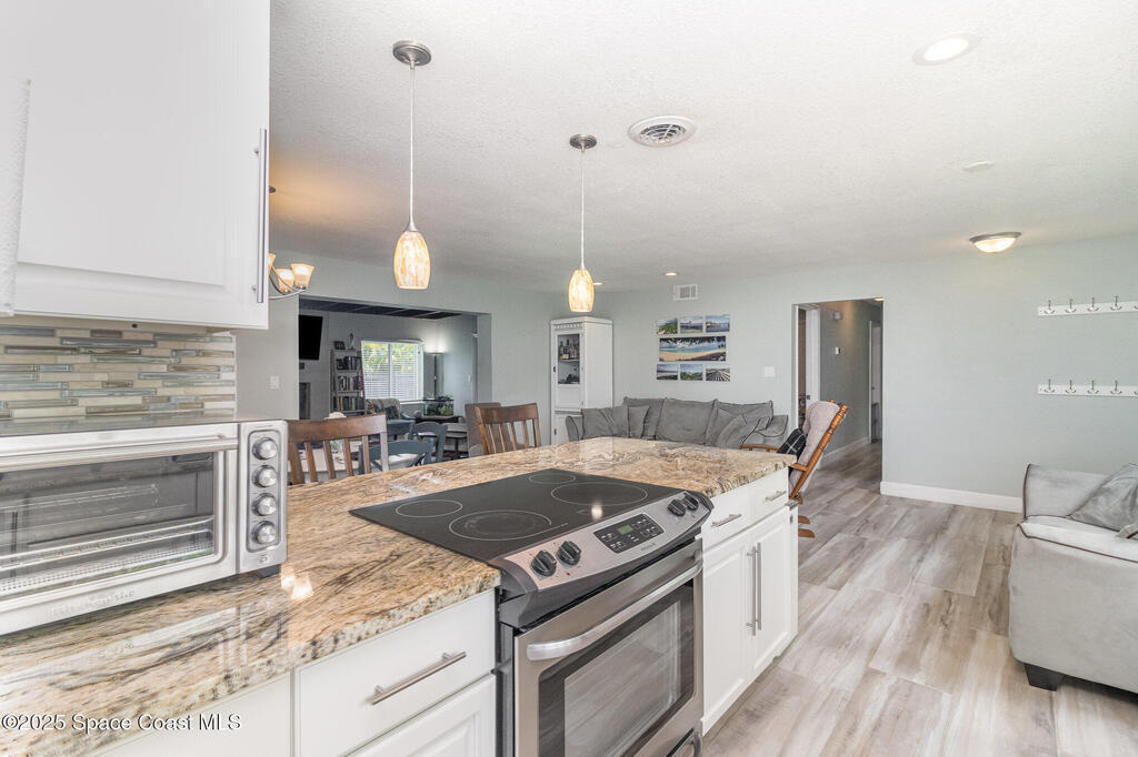 Updated 4-bedroom, 2-bath beachside pool home just blocks from the ocean! This move-in-ready home features an open-concept floor plan with an updated kitchen offering granite countertops, stainless steel appliances, and wood-look tile flooring throughout. Both bathrooms have been beautifully remodeled. Major upgrades include a new roof (2024), AC (2019), energy-efficient windows (2019), hurricane shutters, and a 100% paid-off solar system providing excellent energy savings. Step outside to your private backyard oasis with a generously sized pool, brick paver decking, gas pool heater, and a large screened enclosure--perfect for entertaining. The fully fenced yard adds privacy and peace of mind. Ideally located on a quiet dead-end street just 1/2 mile from beach access, with easy access to schools, shopping, restaurants, and the Pineda Causeway. Whether you're looking for a full-time residence or the perfect vacation retreat, this home offers the best of beachside living.